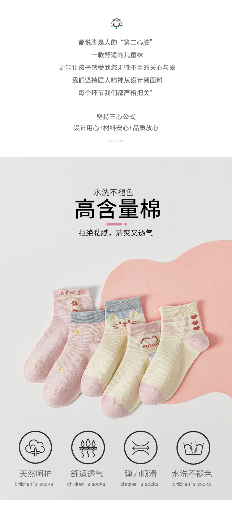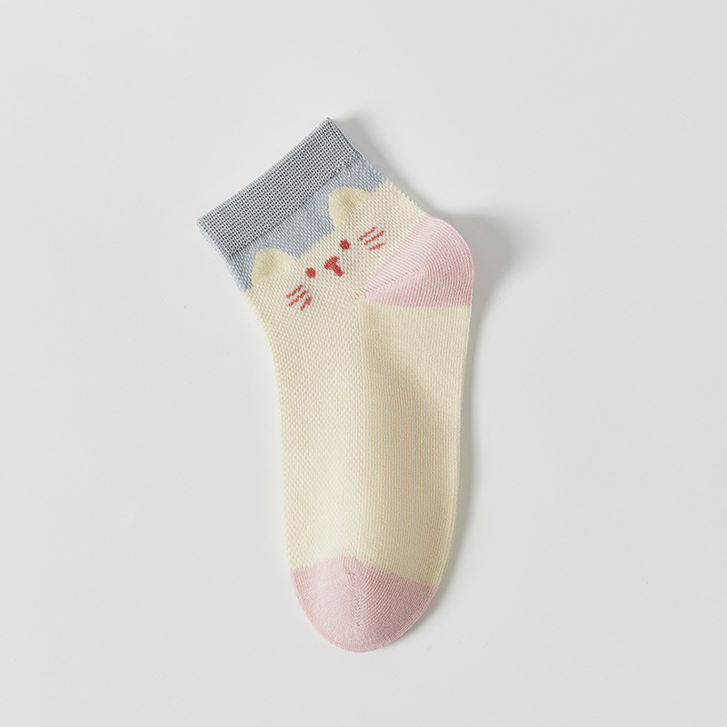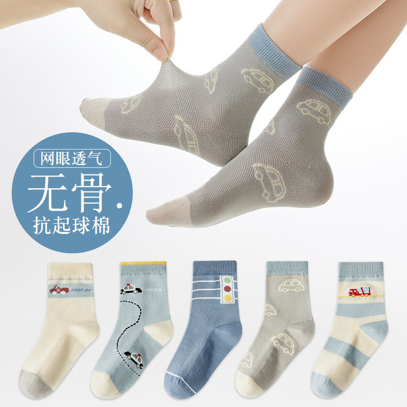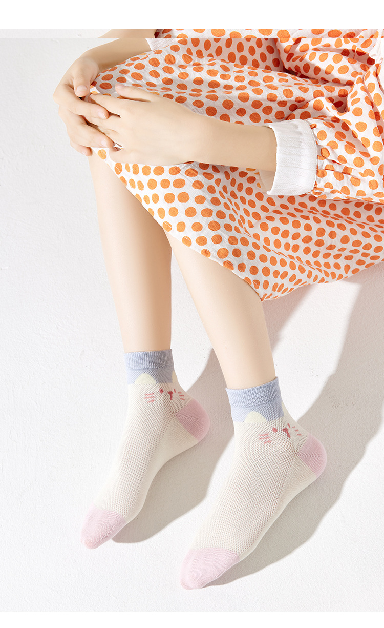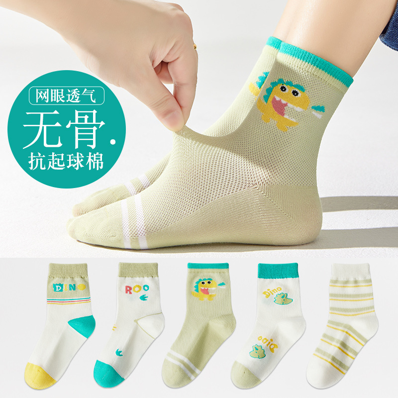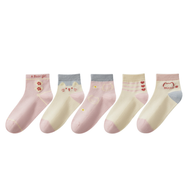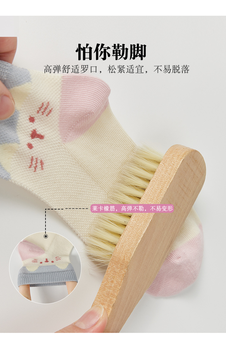 儿童袜子春夏季薄款女童卡通可爱棉袜夏季女宝无骨网眼粉色中筒袜