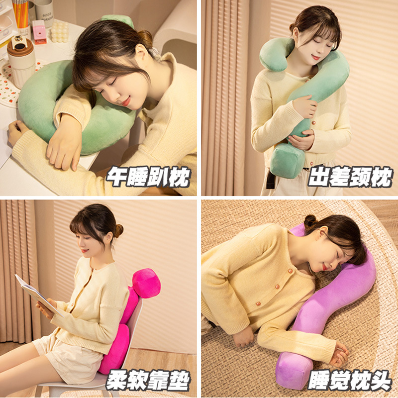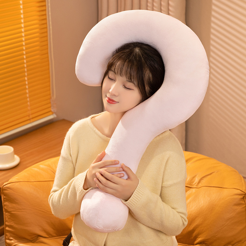 跨境新款创意多巴胺问号颈枕毛绒玩具睡觉抱枕客厅沙发靠垫U型枕