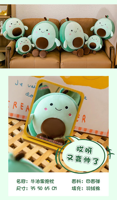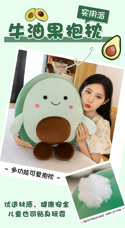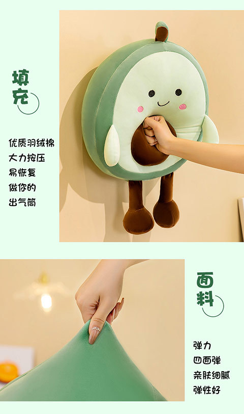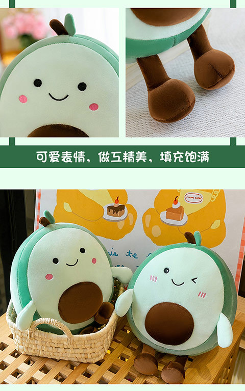 新款可爱牛油果水果抱枕毛绒玩具公仔儿童睡觉安抚娃娃礼物批发