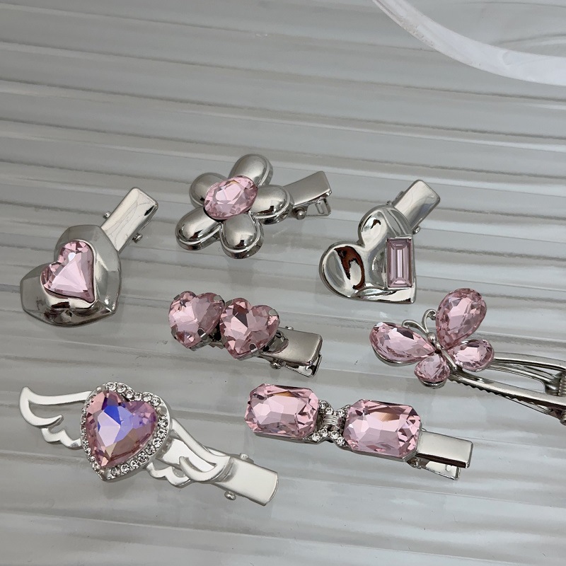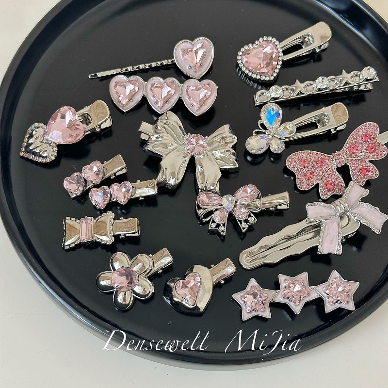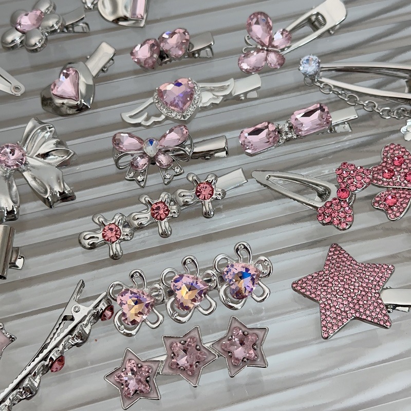 y2k水钻蝴蝶结发夹可爱少女星星发卡金属侧边女高级感鸭嘴夹发饰