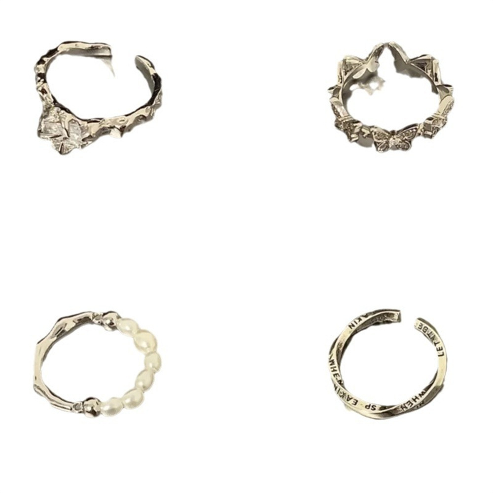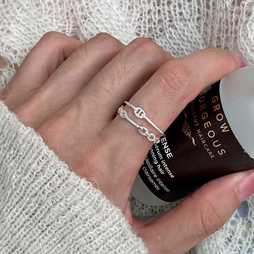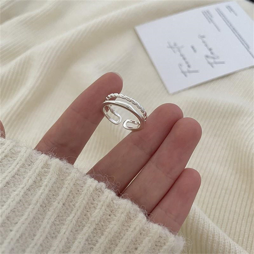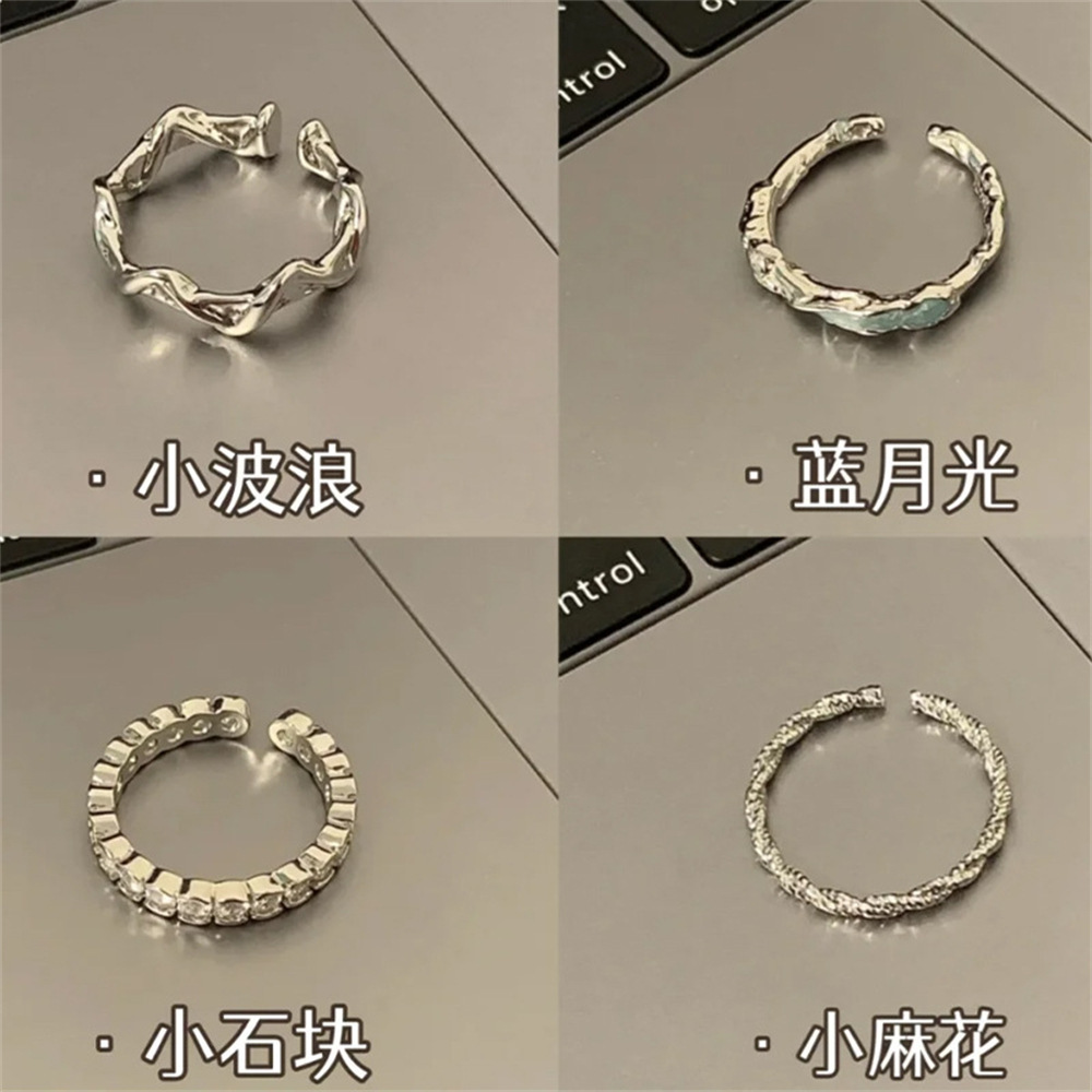 925纯银韩版素圈不规则百搭戒指女小众ins风设计不掉色组合指环