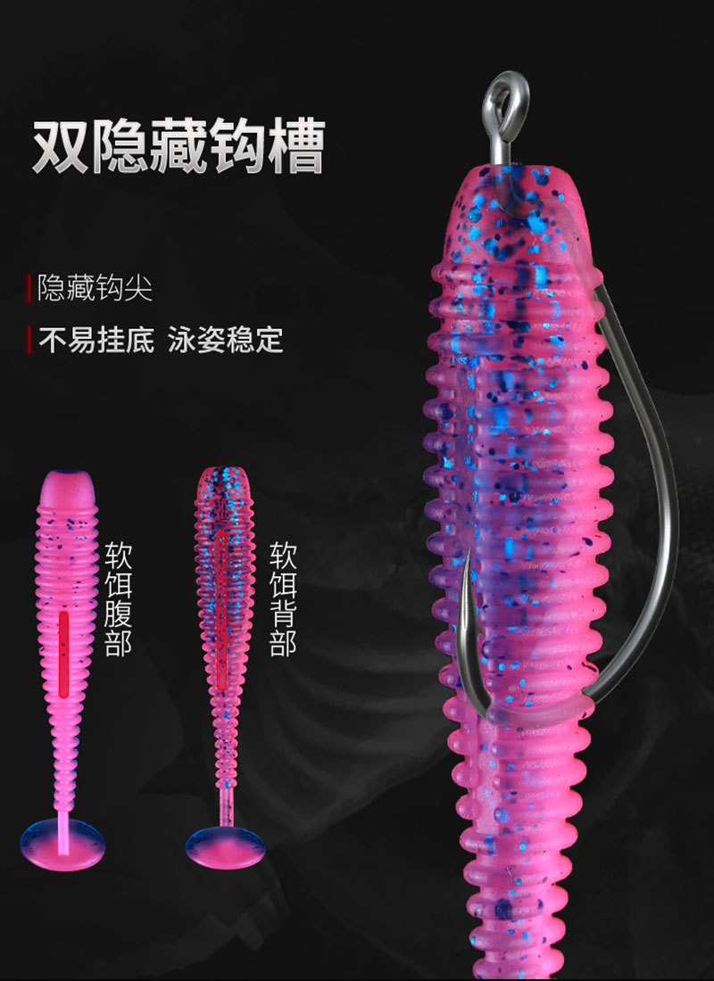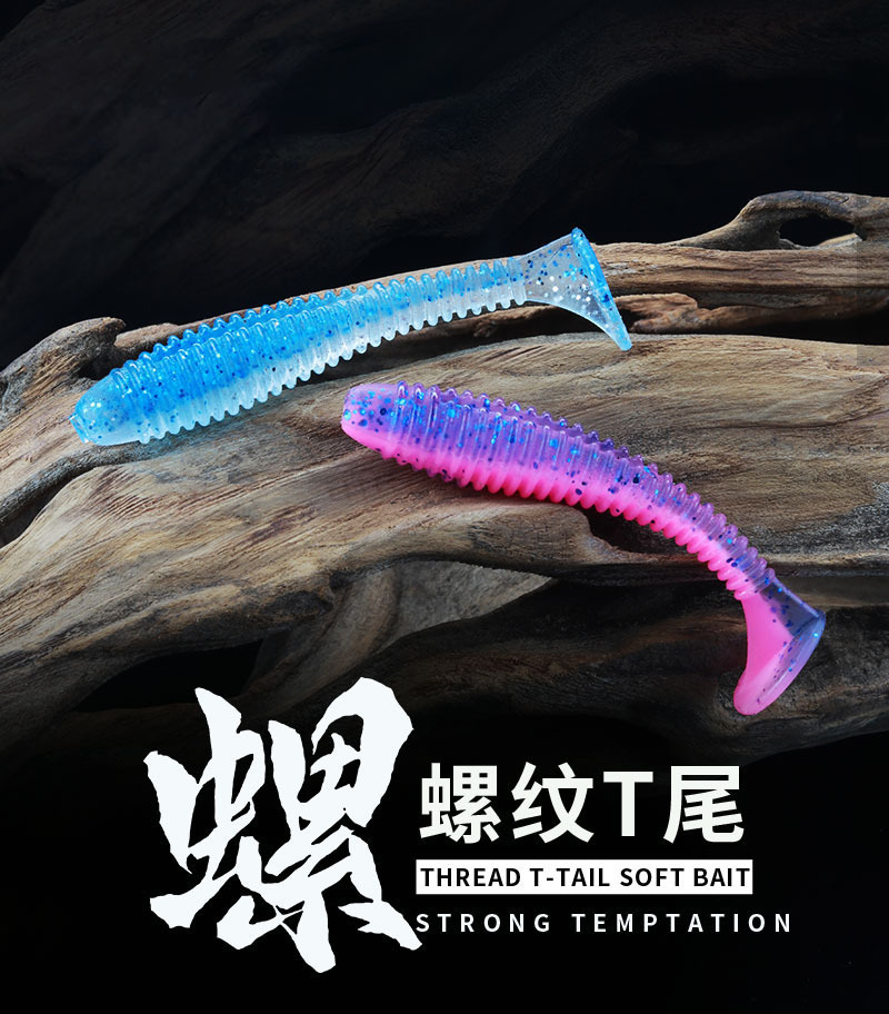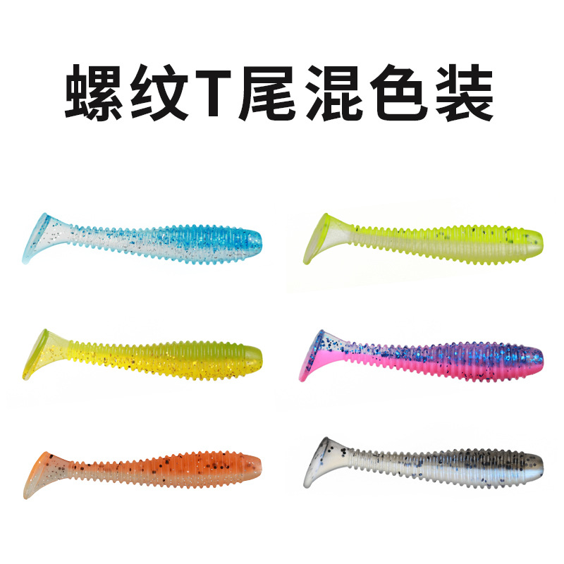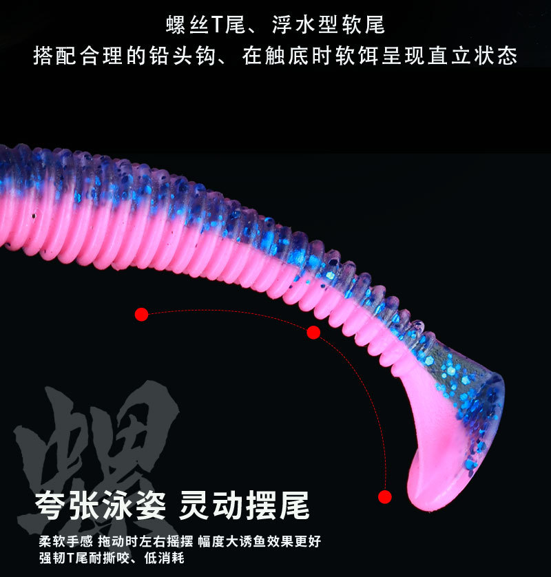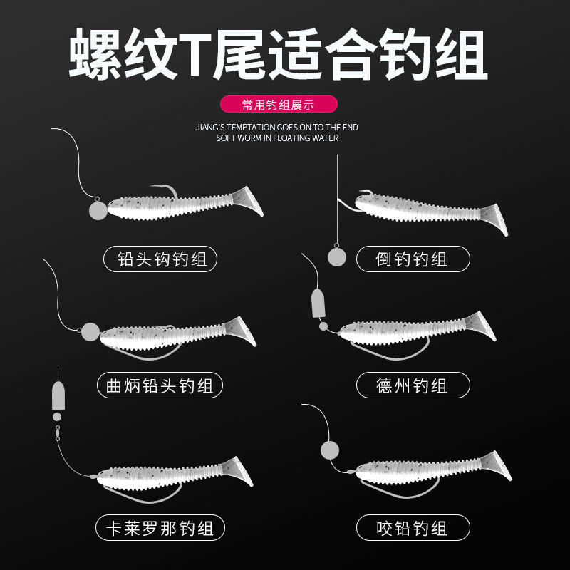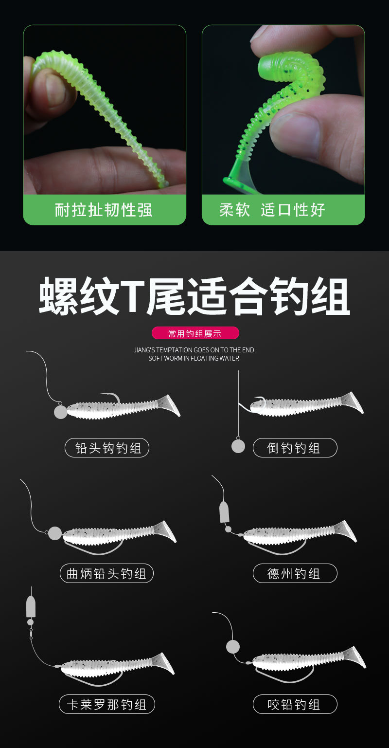 路亚螺纹T尾软饵虾倒钓插铅假饵鲈鱼鳜鱼翘嘴半浮水缓沉螺旋软虫
