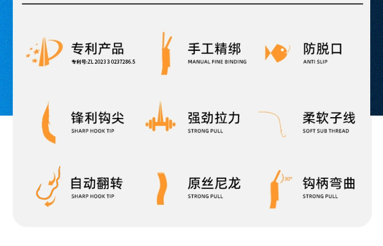 | no. 5 hook [recommended fishing within 0.75kg]](5号钩【建议钓1.5斤内】) | USD $0.57 | 49940 pack available |