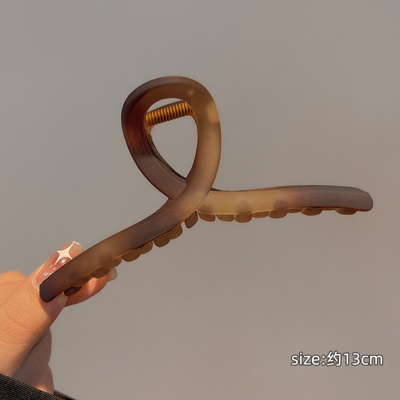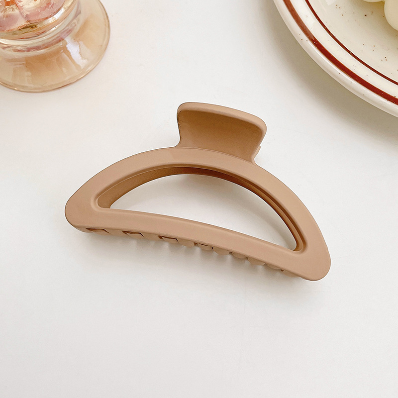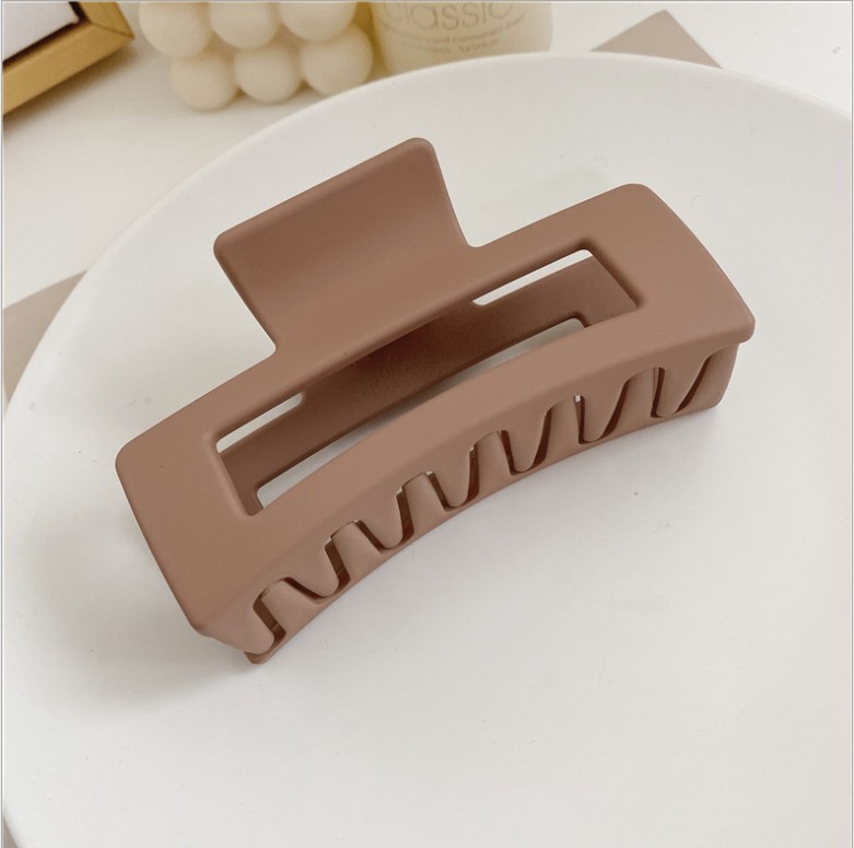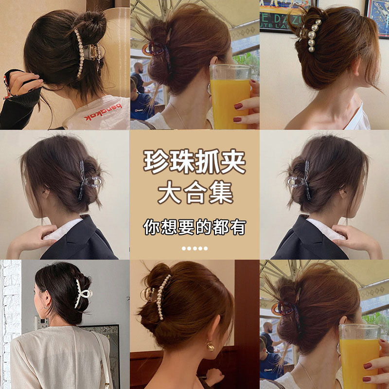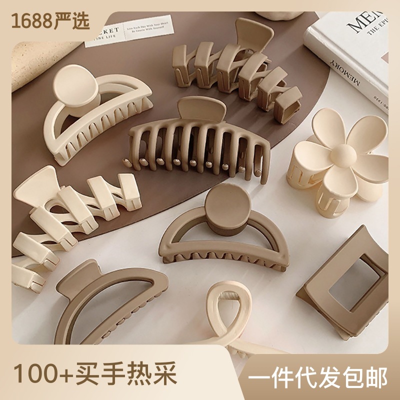 高级感奶咖色磨砂抓夹女后脑勺发卡珍珠发夹大号鲨鱼夹发抓批发