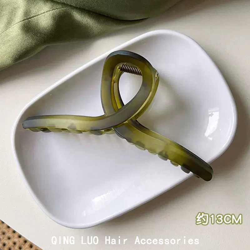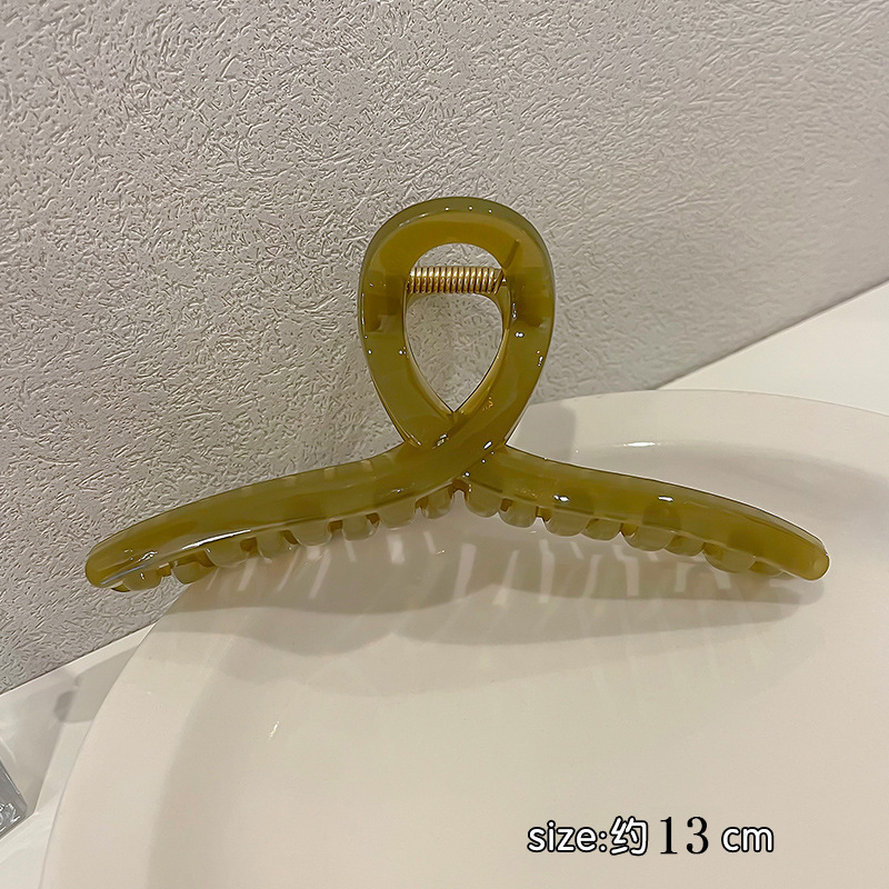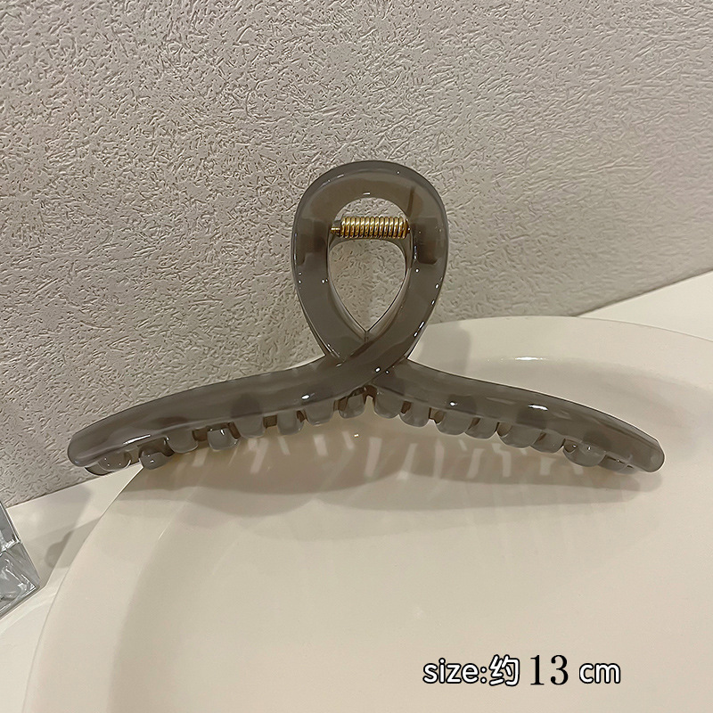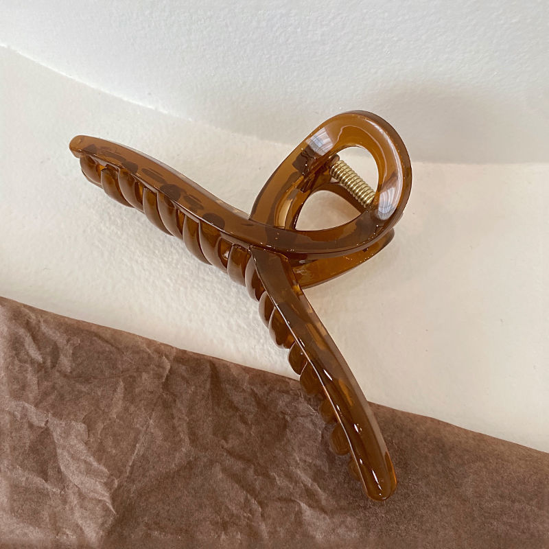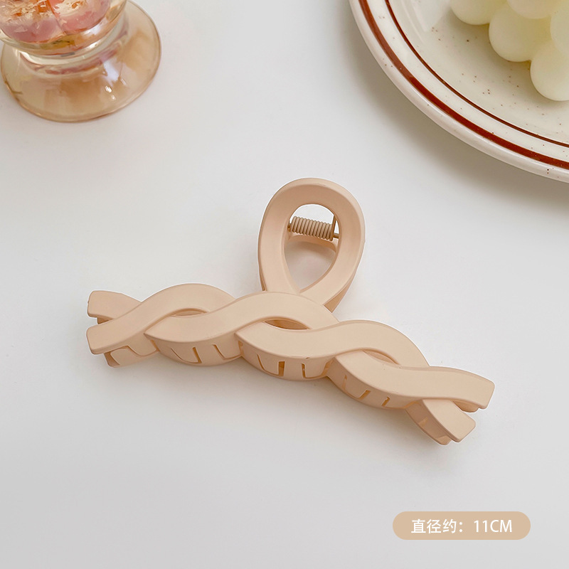 高级感奶咖色磨砂抓夹女后脑勺发卡珍珠发夹大号鲨鱼夹发抓批发