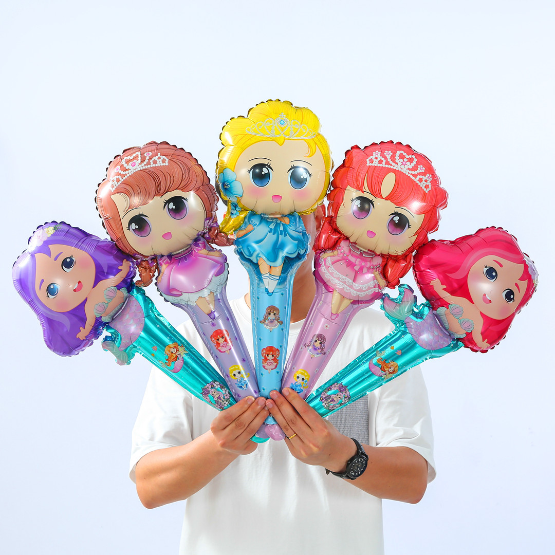 六一儿童节卡通铝膜气球手持打击棒微商地推扫码61礼品气球