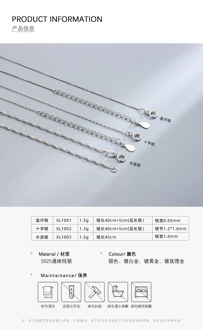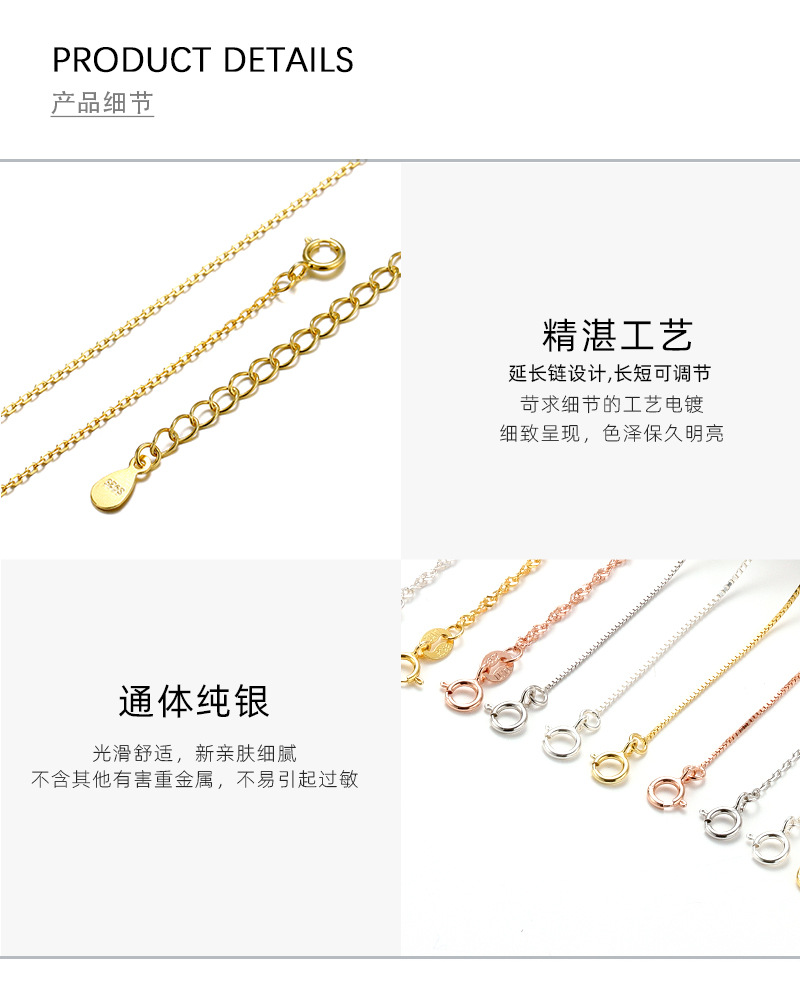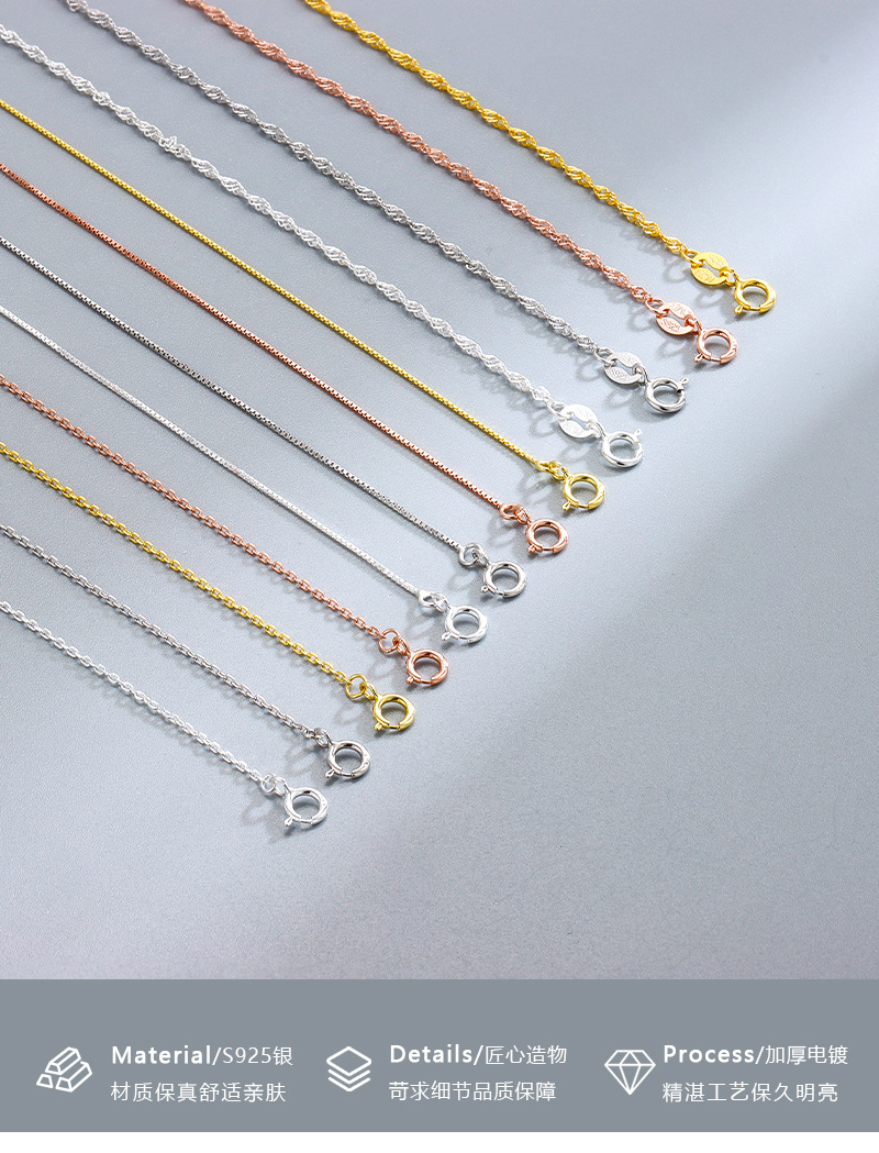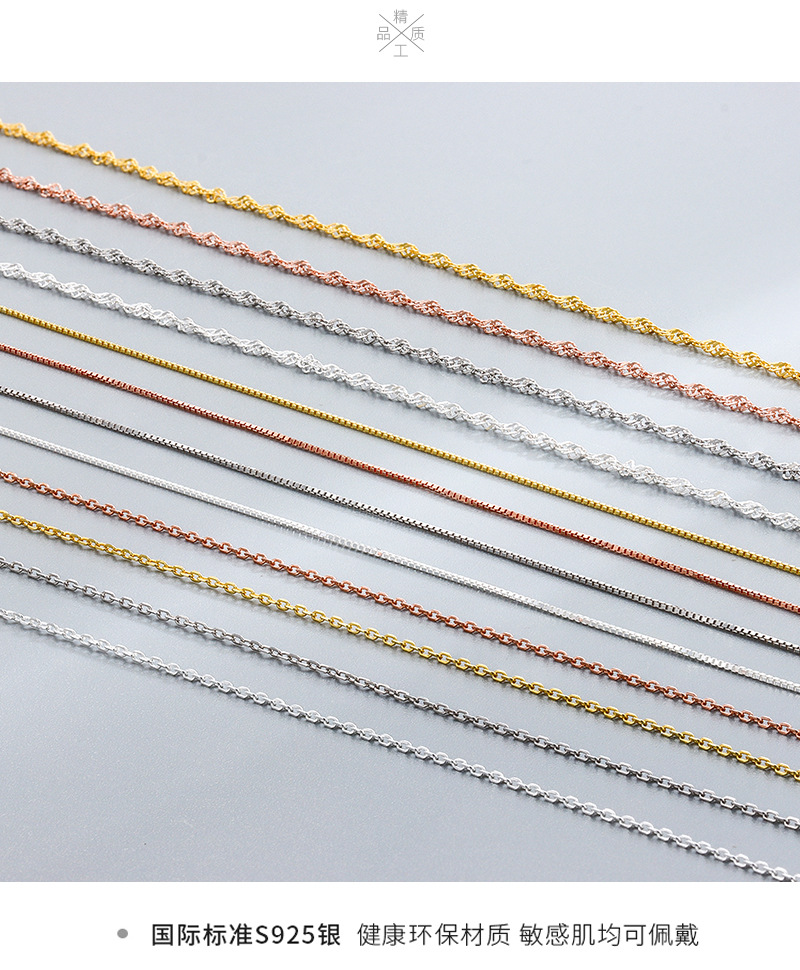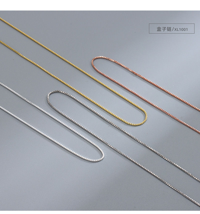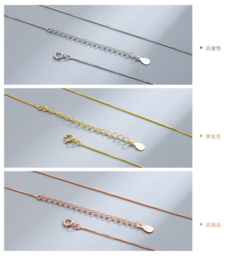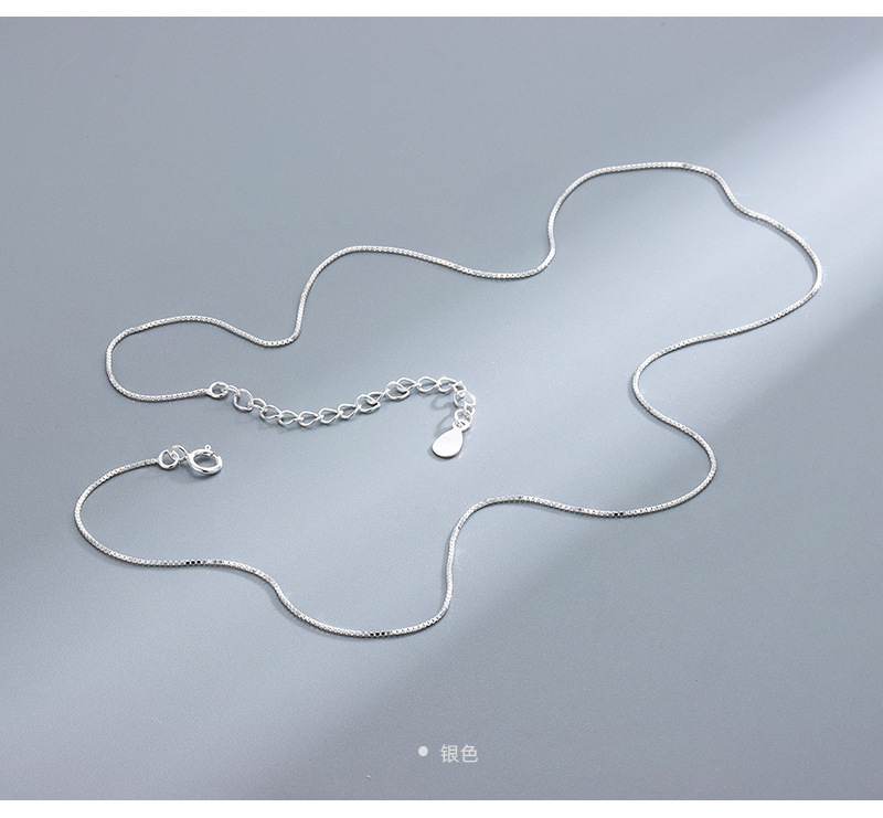 S925纯银项链女无吊坠素链单链盒子链DIY百搭锁骨链轻奢设计配链