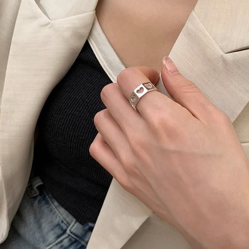 素圈戒指女春秋冷淡风素银指环小众设计感开口食指戒不掉色尾戒