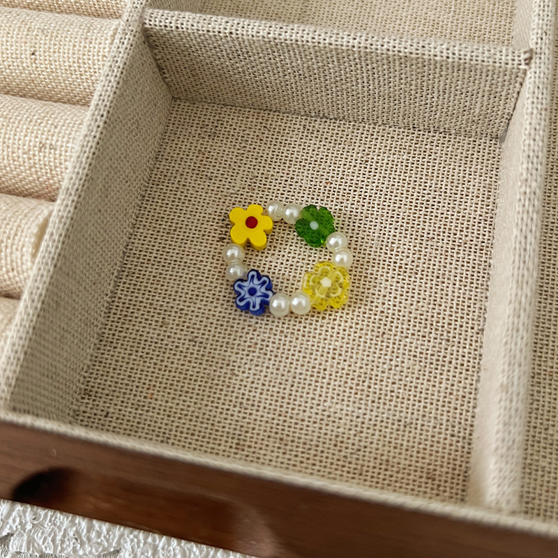 彩色水晶串珠戒指ins小众设计感高级手指戒轻奢气质百搭指环配饰