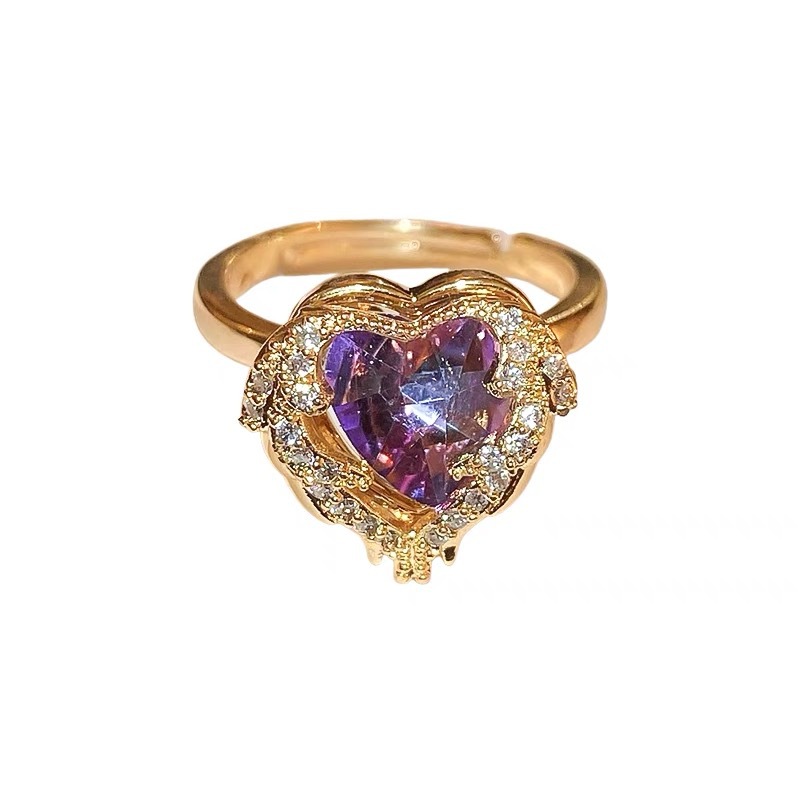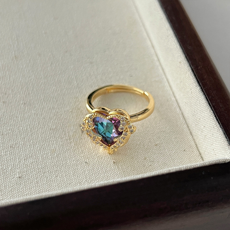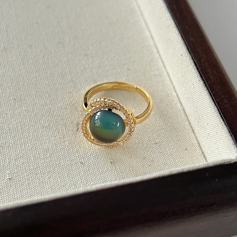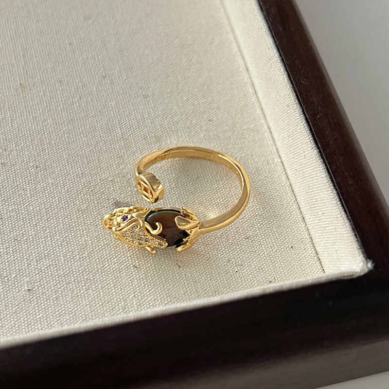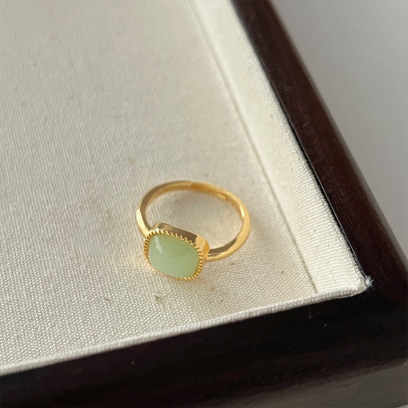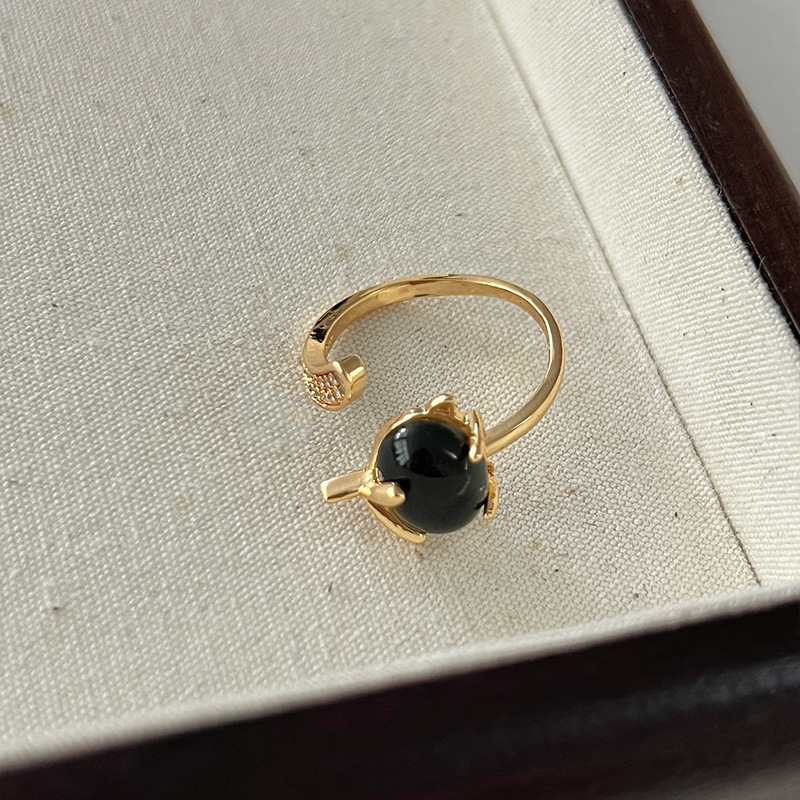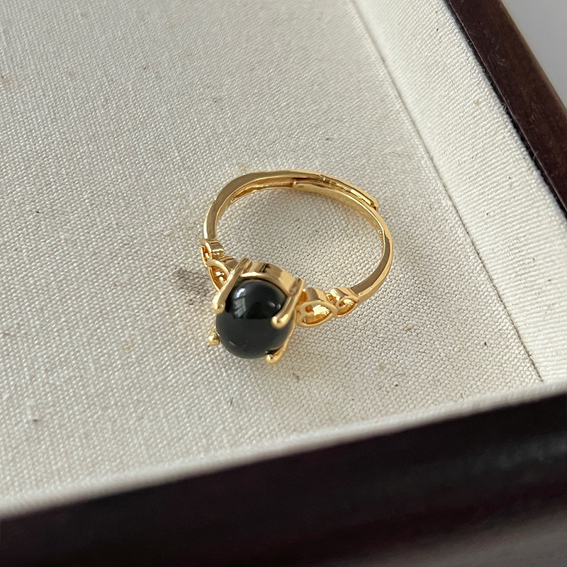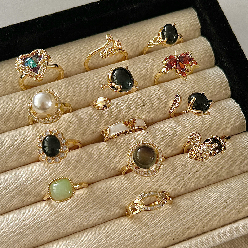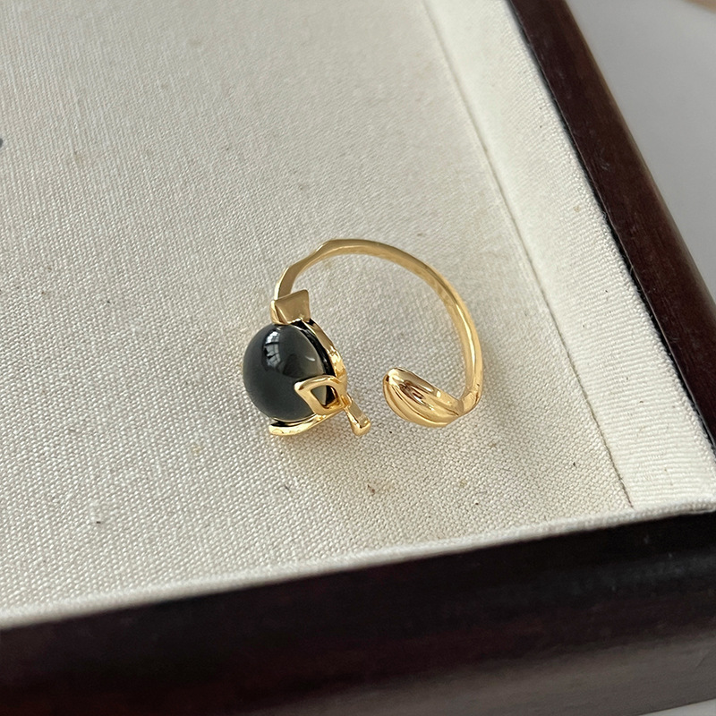 复古天然石开口戒指女时尚个性小众设计感食指戒网红气质精致指环