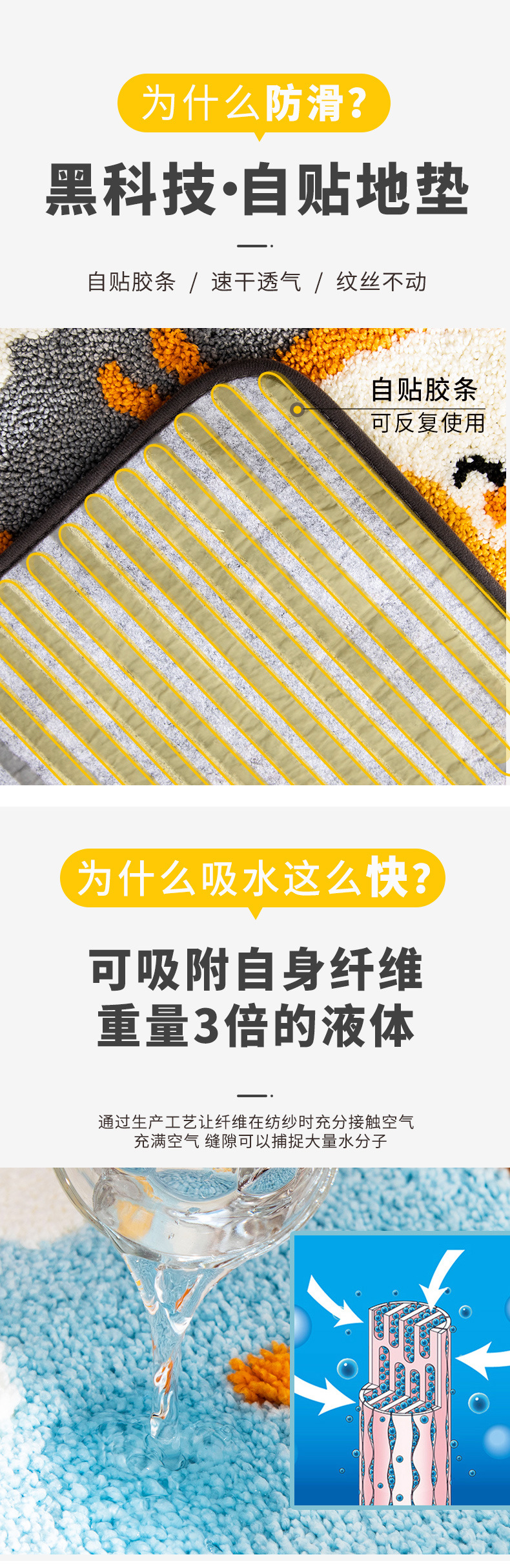 亚马逊地垫卫生间吸水地垫浴室进门防滑垫子卧室门口脚垫厕所地毯