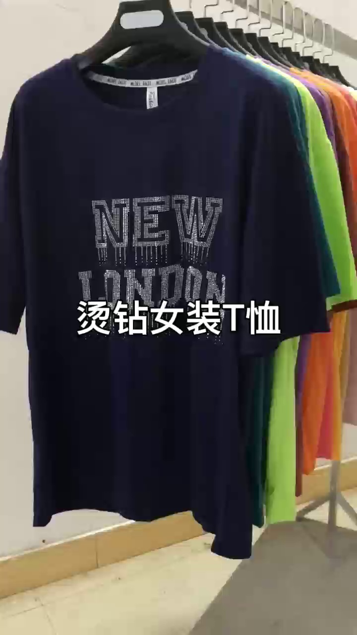 纯棉重工烫钻大版女式短袖T恤夏季新款宽松大码女装短袖上衣服
