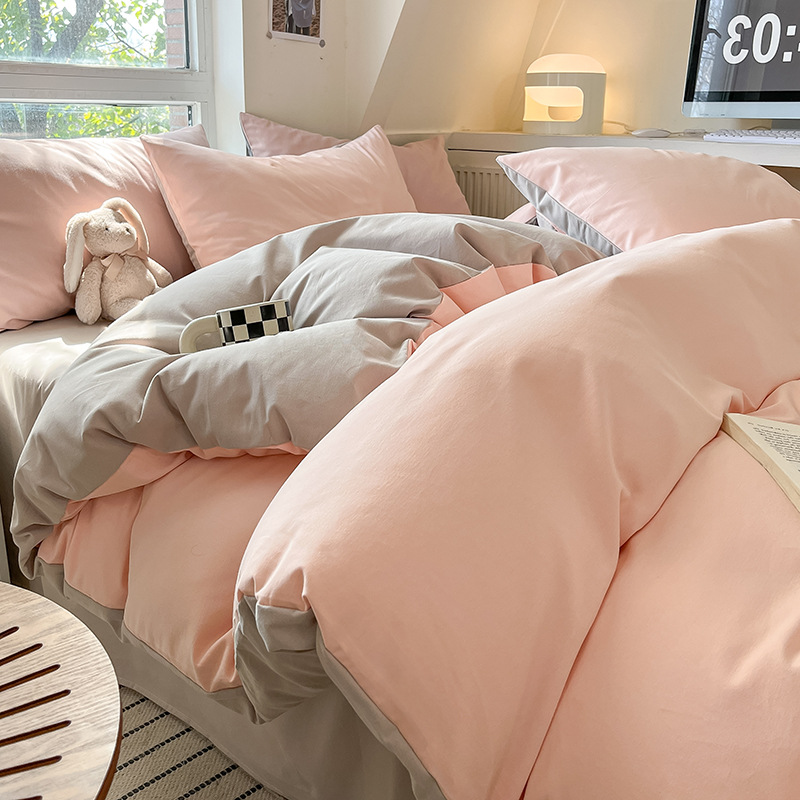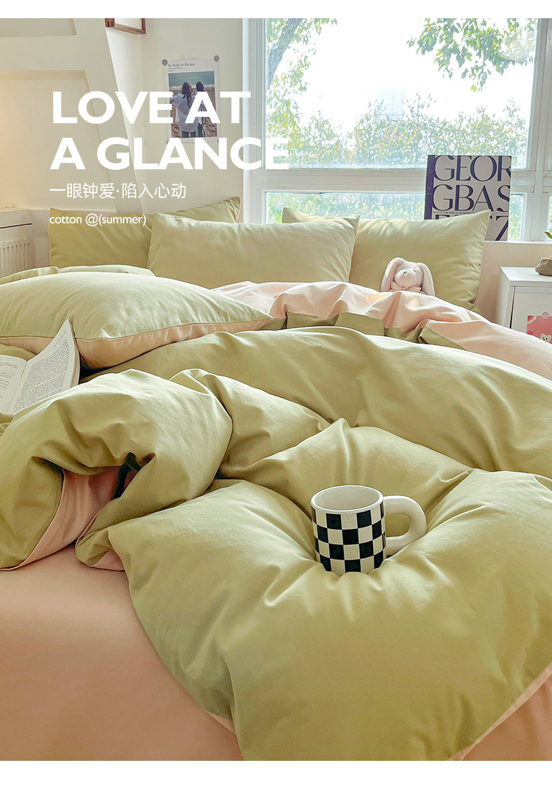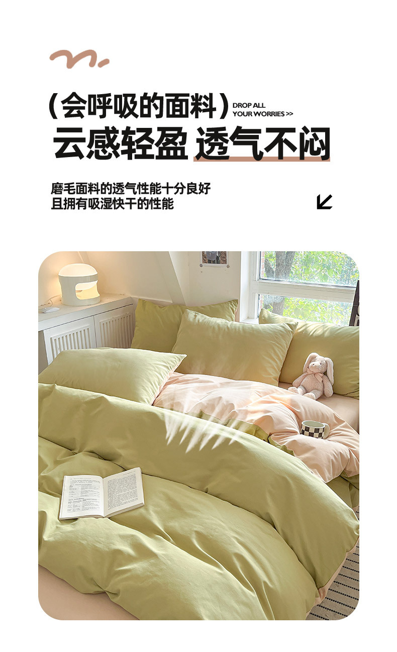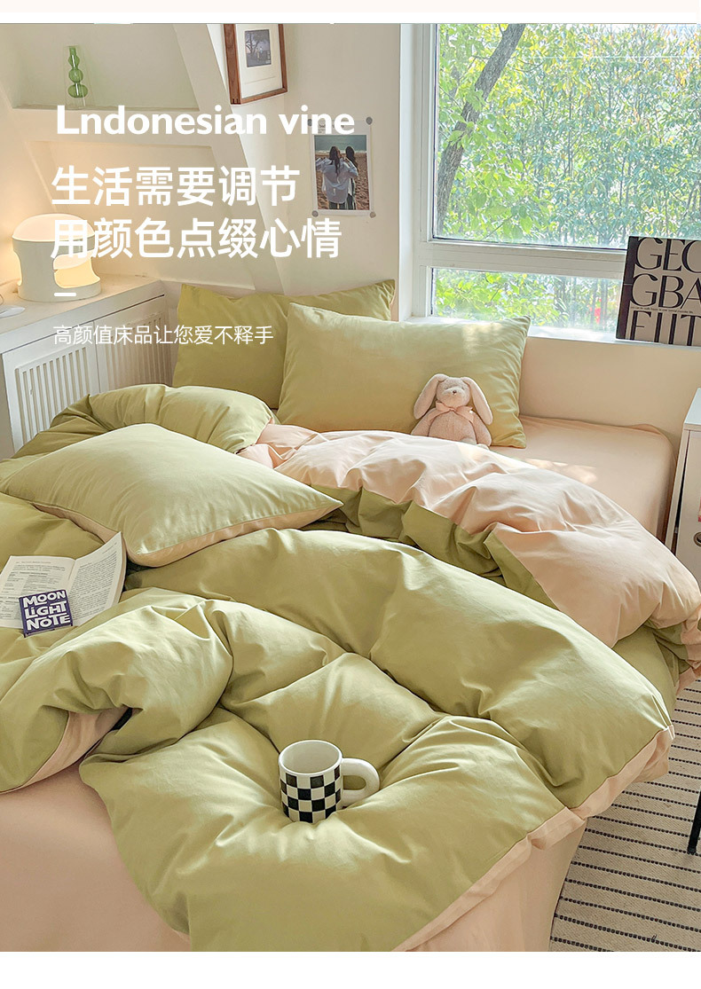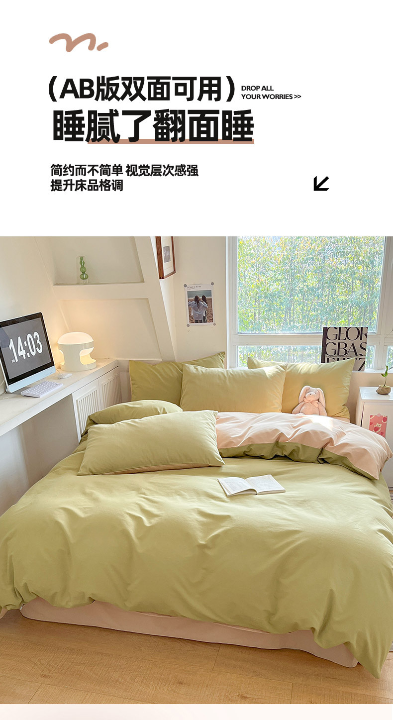 小清新纯色水洗棉亲肤磨毛四件套单双人宿舍套件被套枕套被罩单件