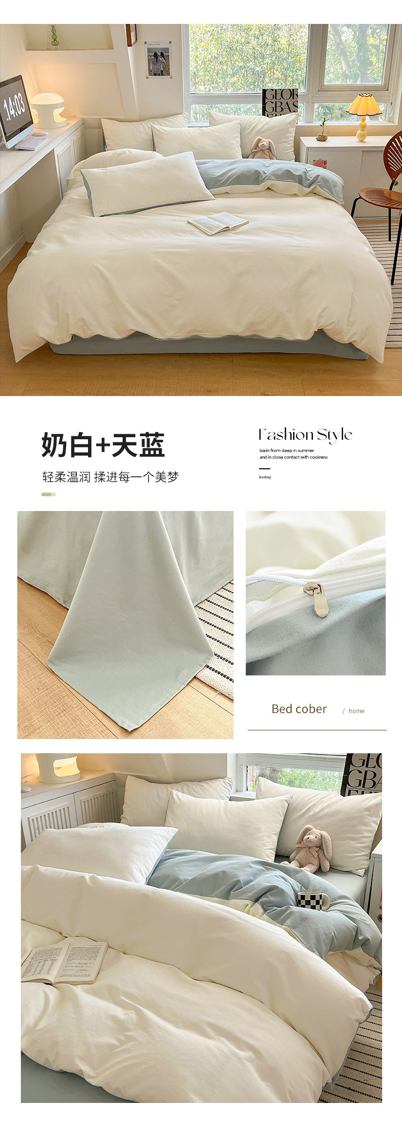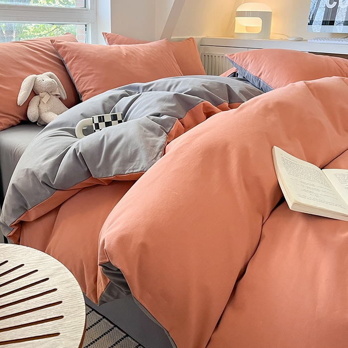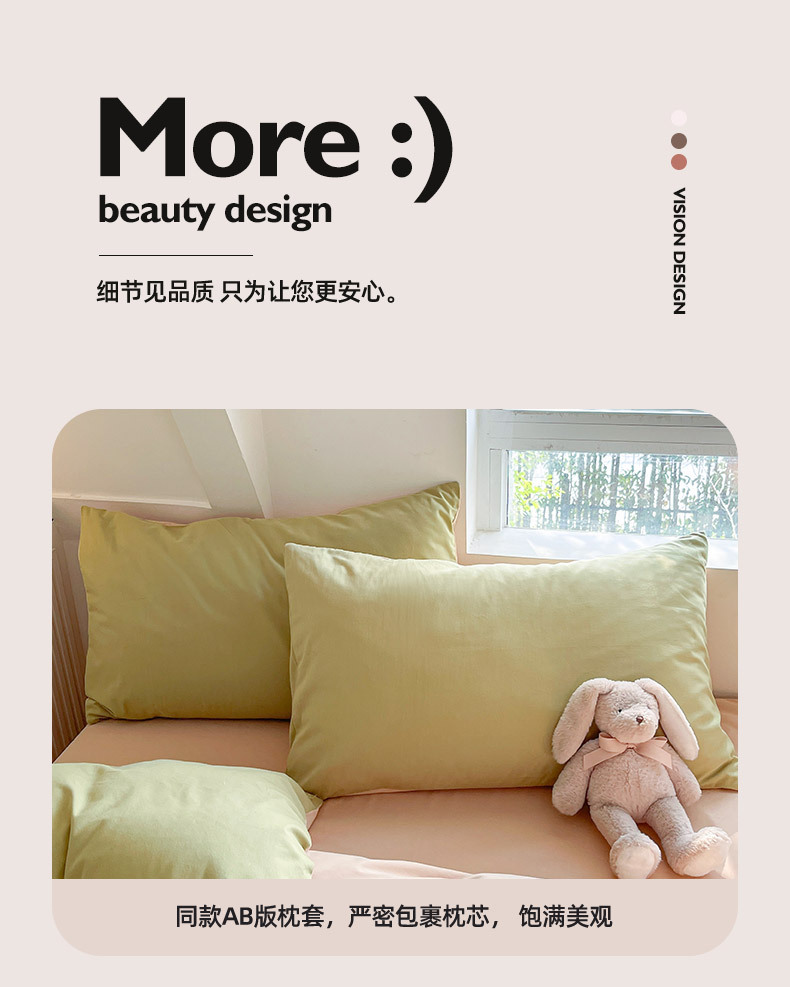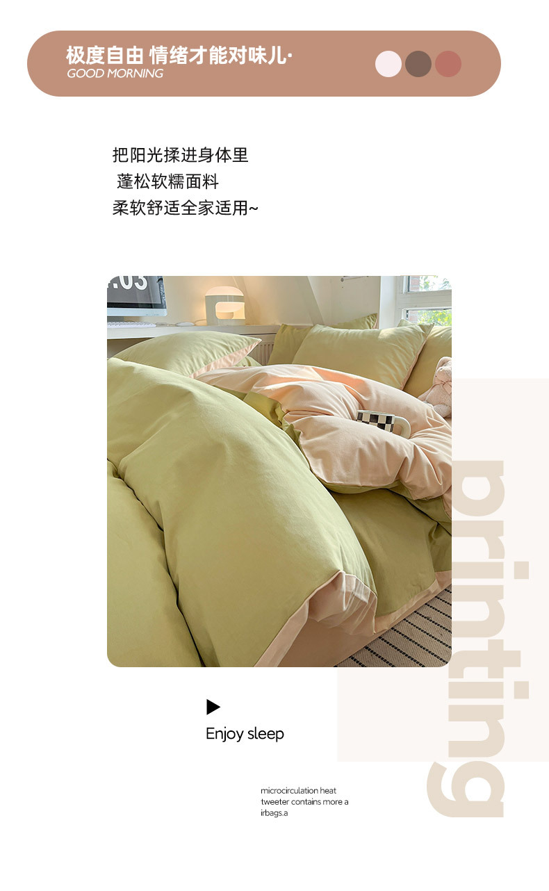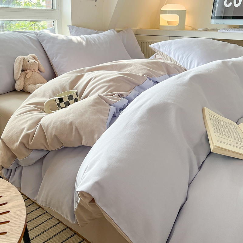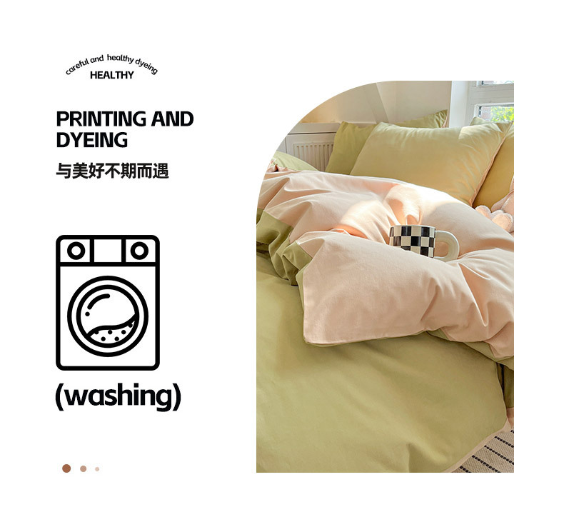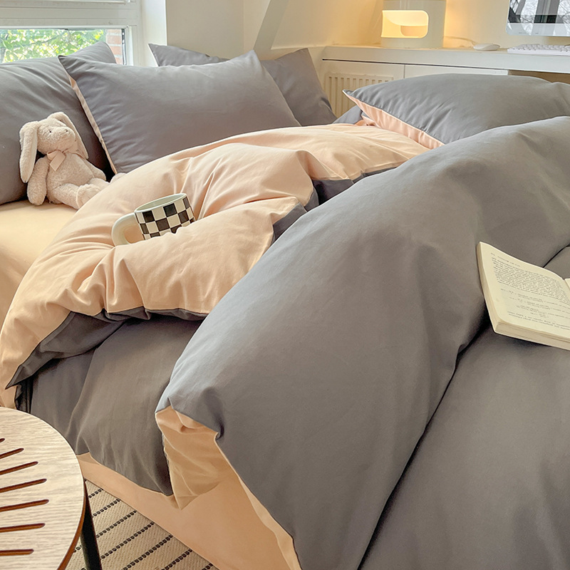 小清新纯色水洗棉亲肤磨毛四件套单双人宿舍套件被套枕套被罩单件