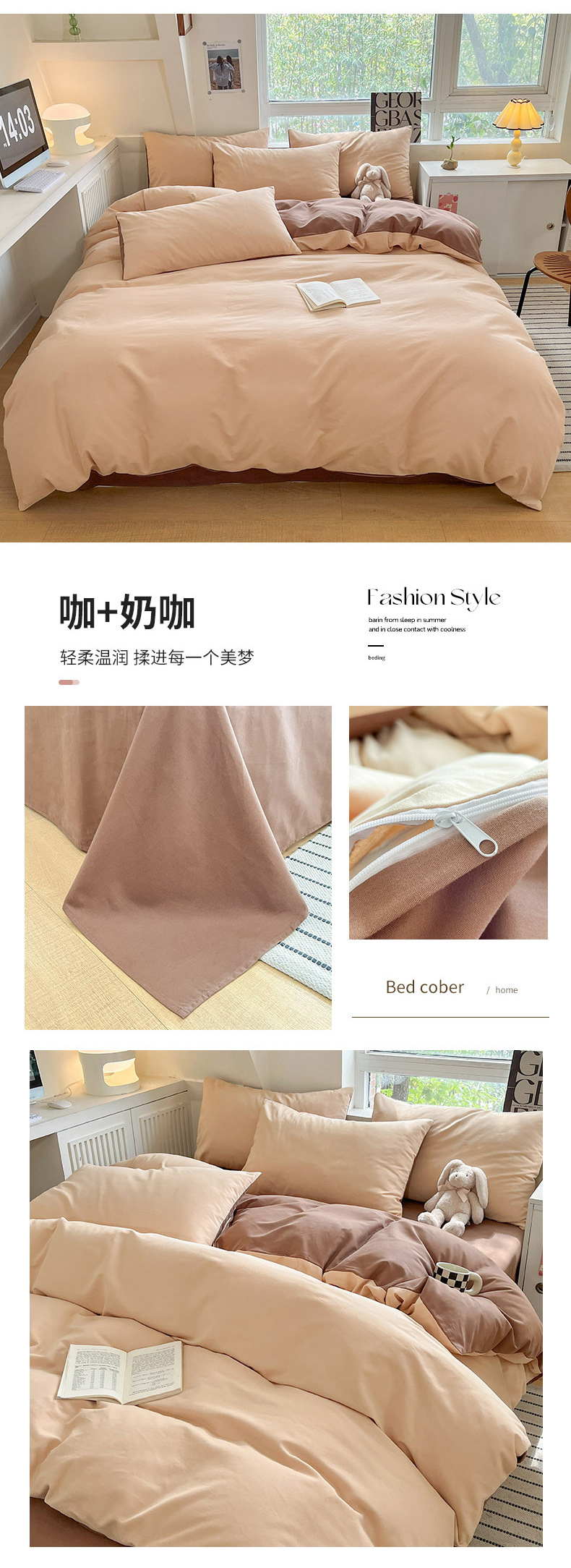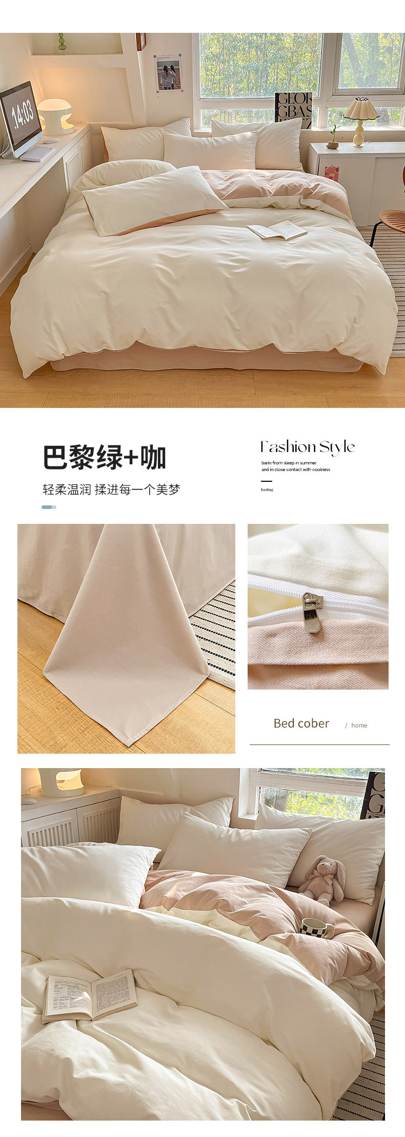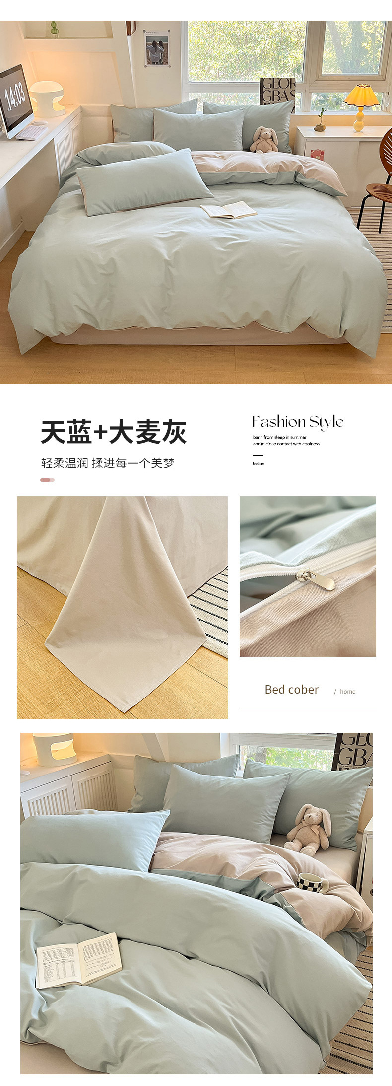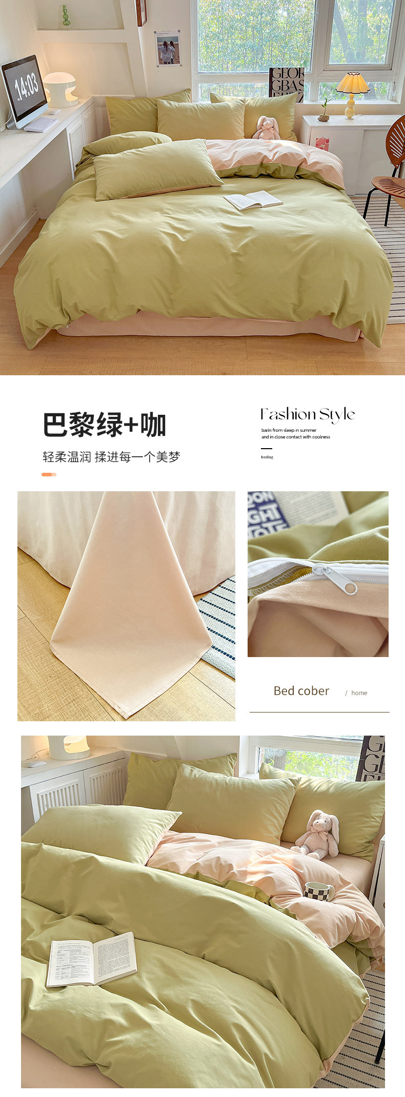 小清新纯色水洗棉亲肤磨毛四件套单双人宿舍套件被套枕套被罩单件