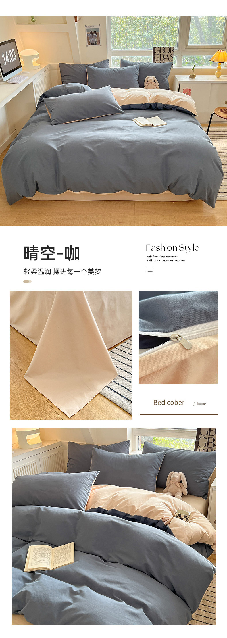 | 1.5 fitted sheet four-piece suit (quilt cover 2.0)(1.5床笠四件套(被套2.0)) | USD $11.92 | 888 set available |