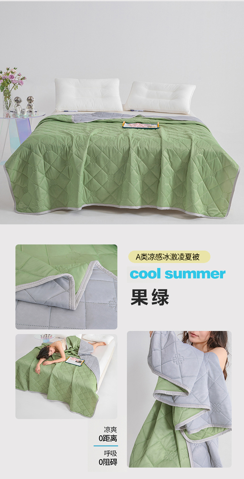 A类薄荷凉感冰淇淋夏凉被纯色冰丝印花空调被可机洗学生宿舍批发