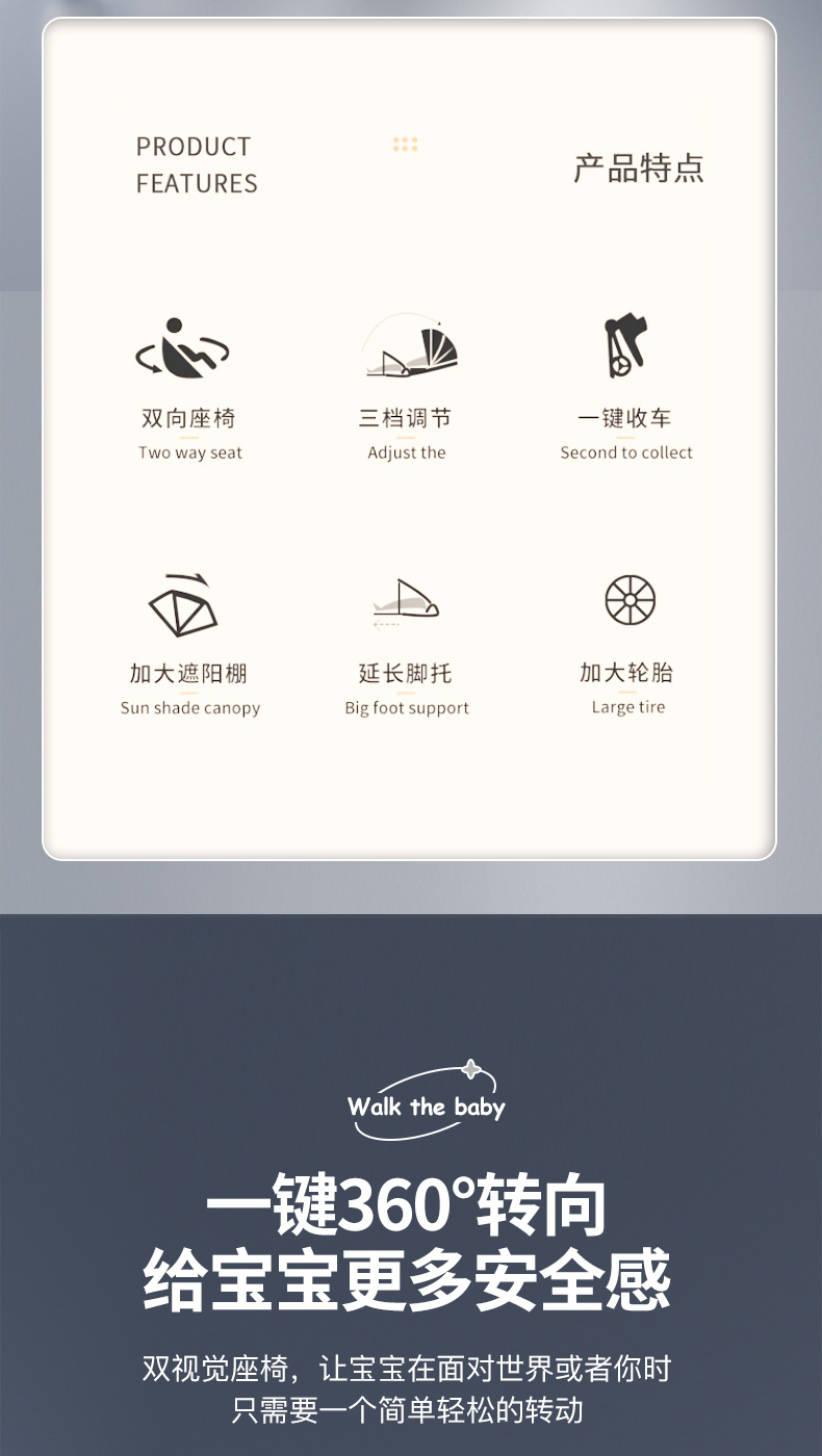 溜娃神器轻便可折叠双向可躺高景观遛娃带娃四轮宝宝婴儿手推车