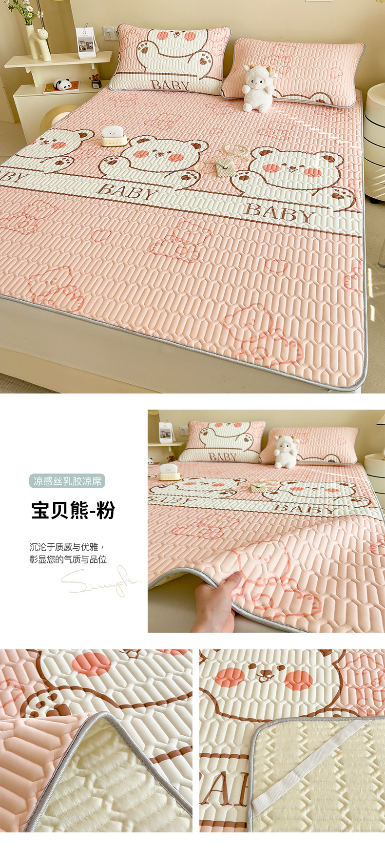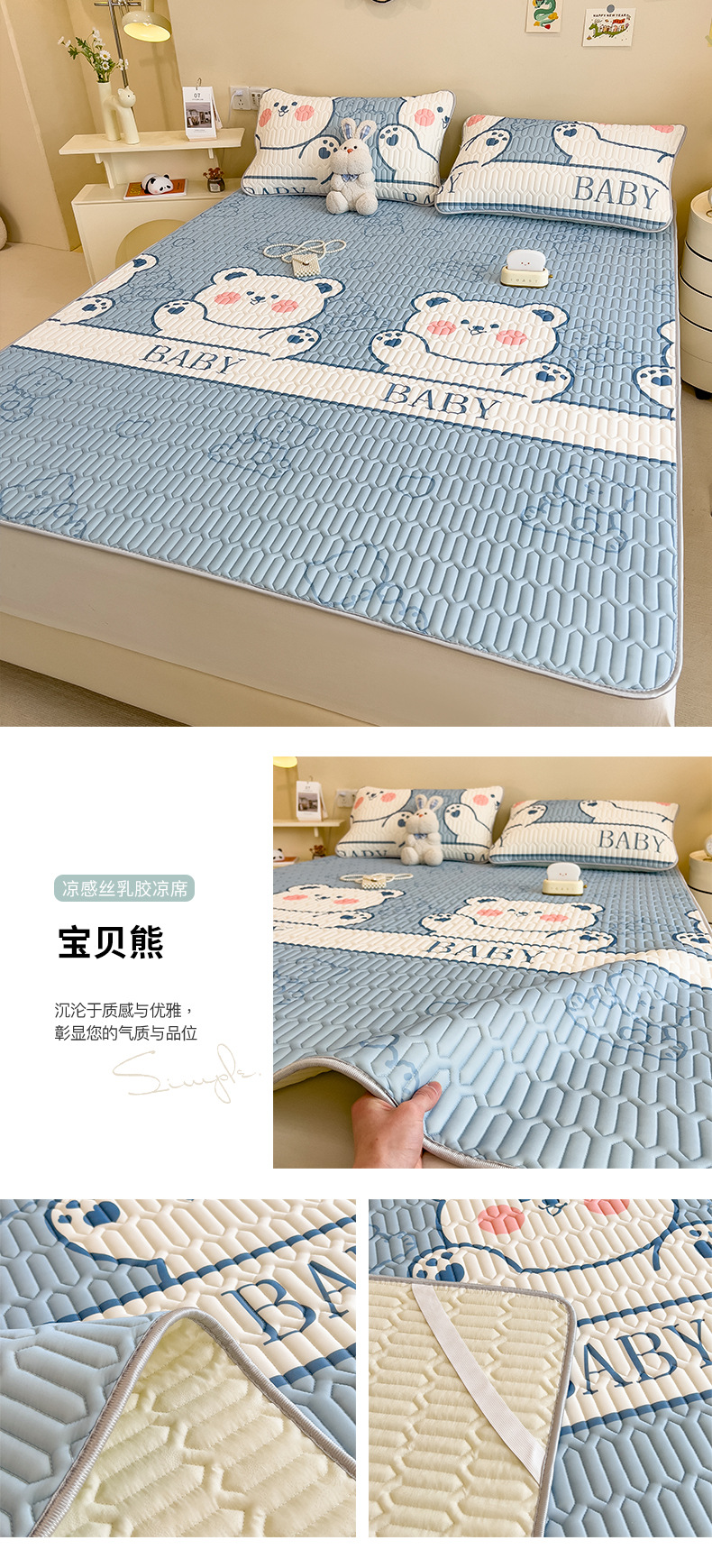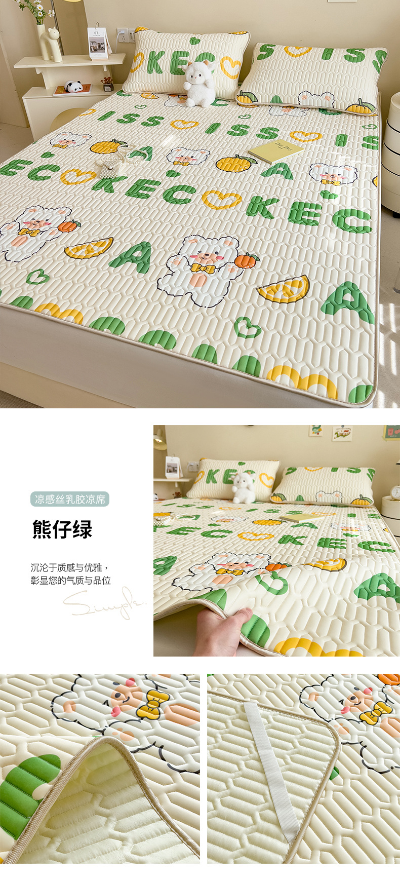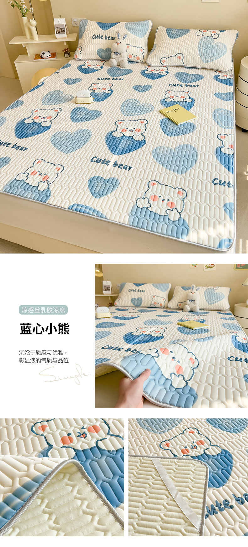 泰国卡通乳胶凉席三件套可水洗冰丝席子学生宿舍单双人空调软席