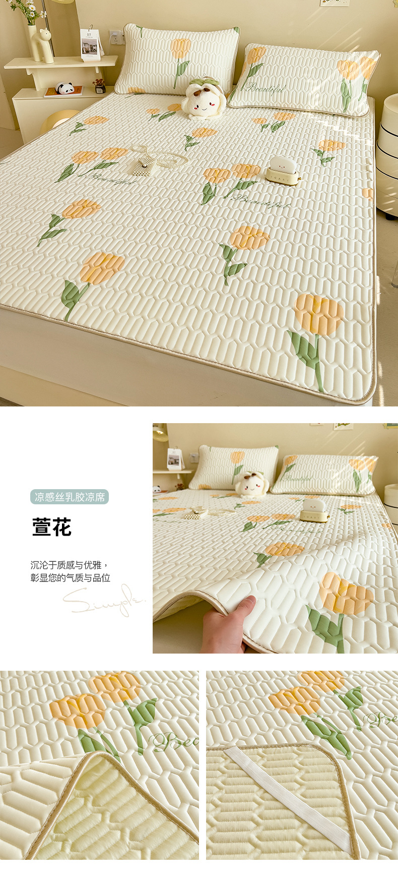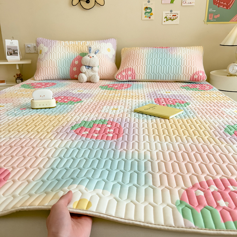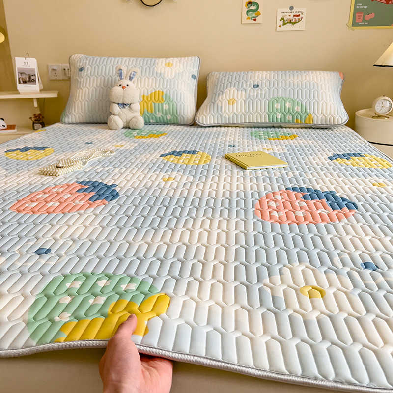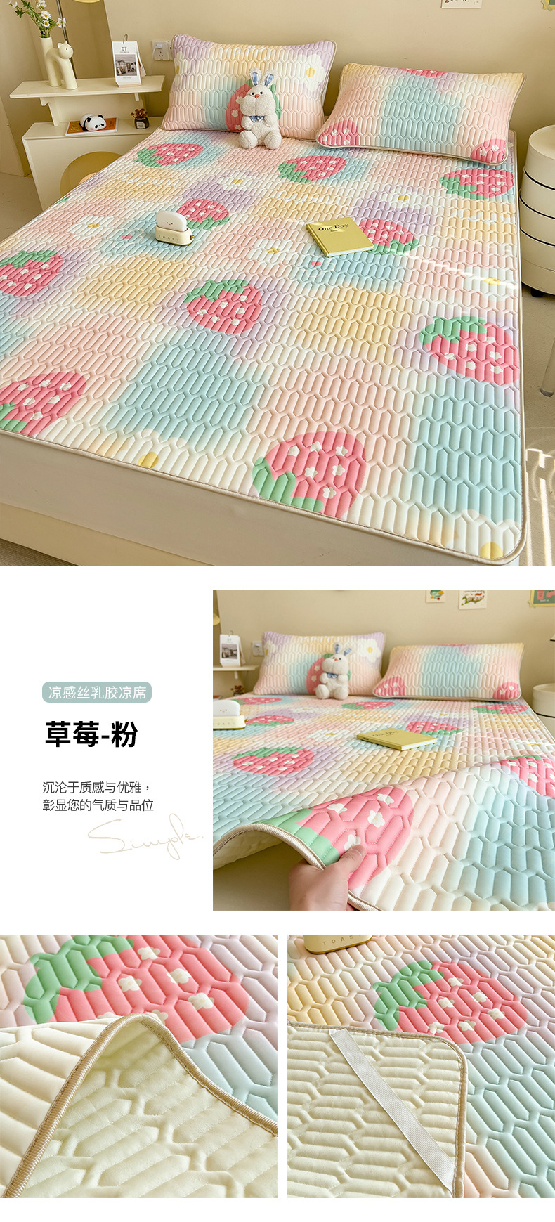 泰国卡通乳胶凉席三件套可水洗冰丝席子学生宿舍单双人空调软席