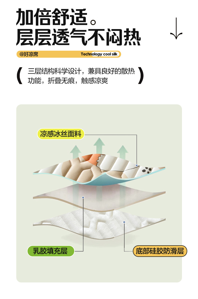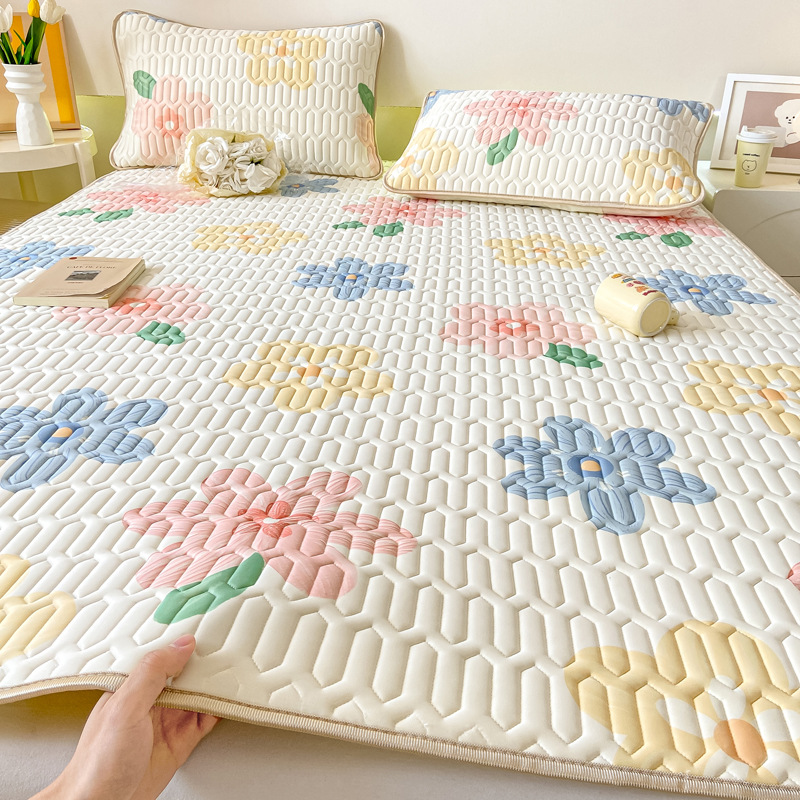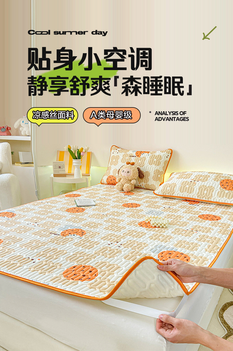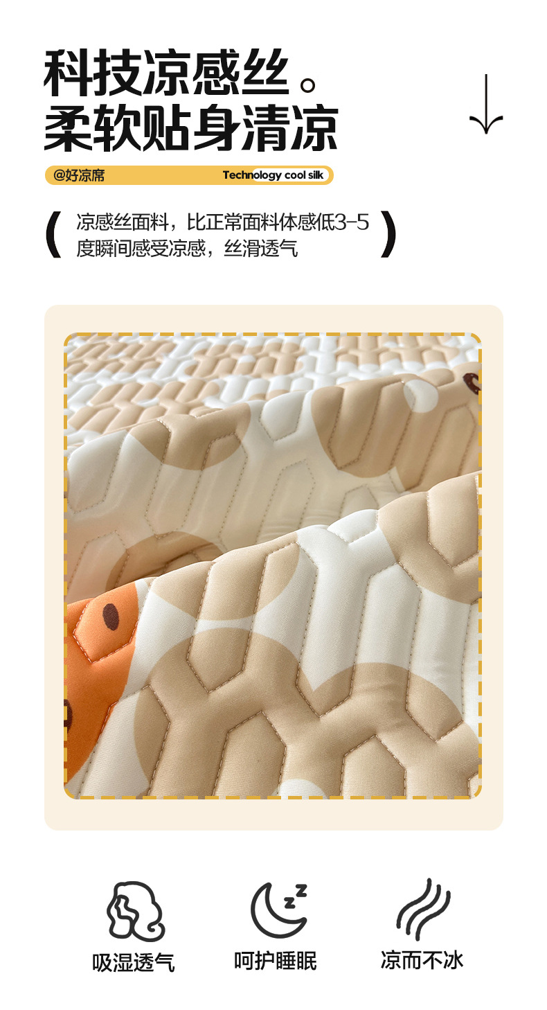 A类母婴级凉感丝印花乳胶凉席三件套单双人宿舍空调席子冰丝软席