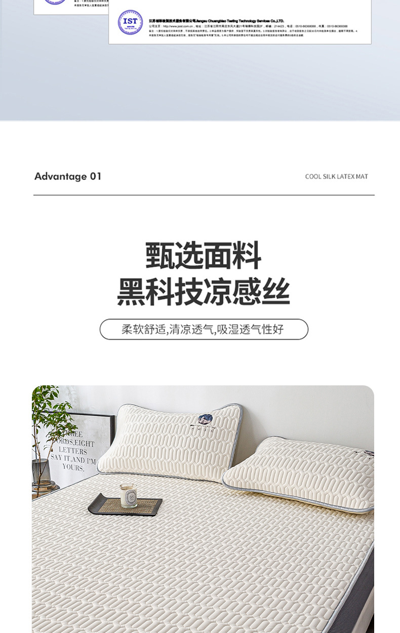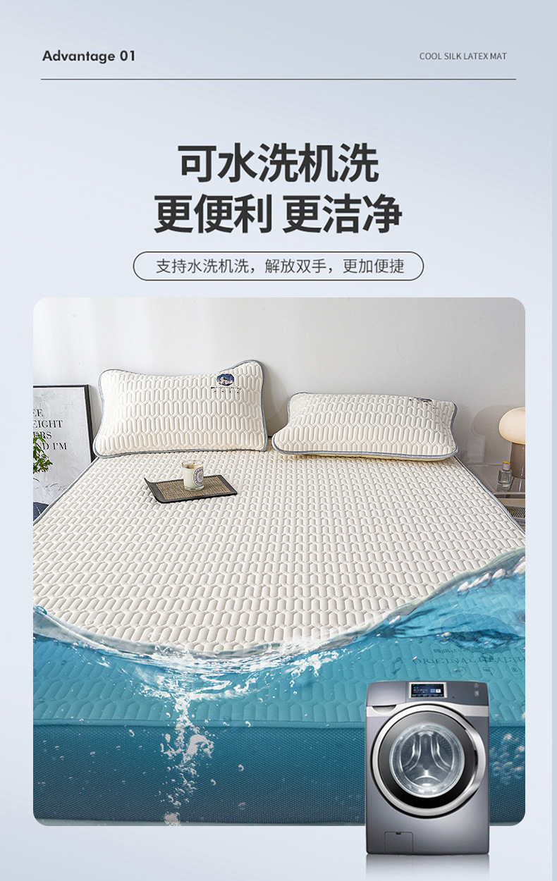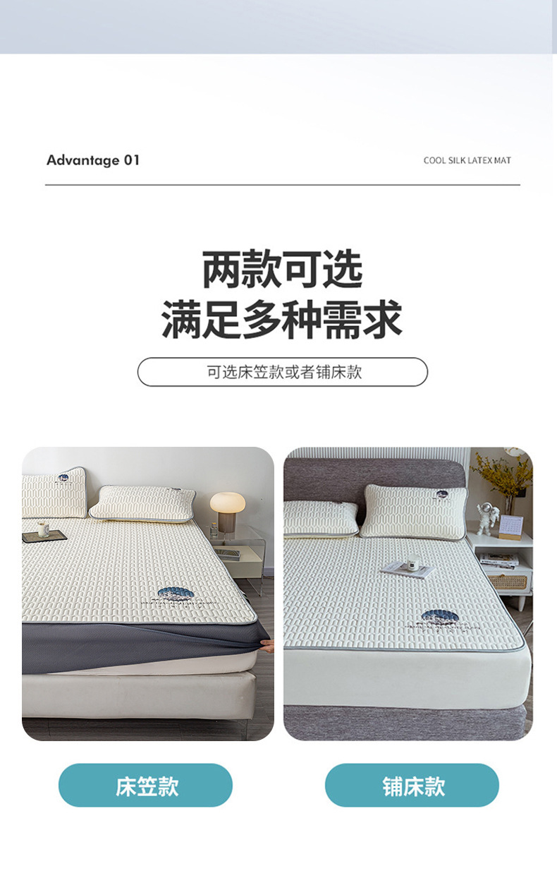 新款A类富士山凉感丝乳胶凉席三件套床席床笠款席子可水洗空调席
