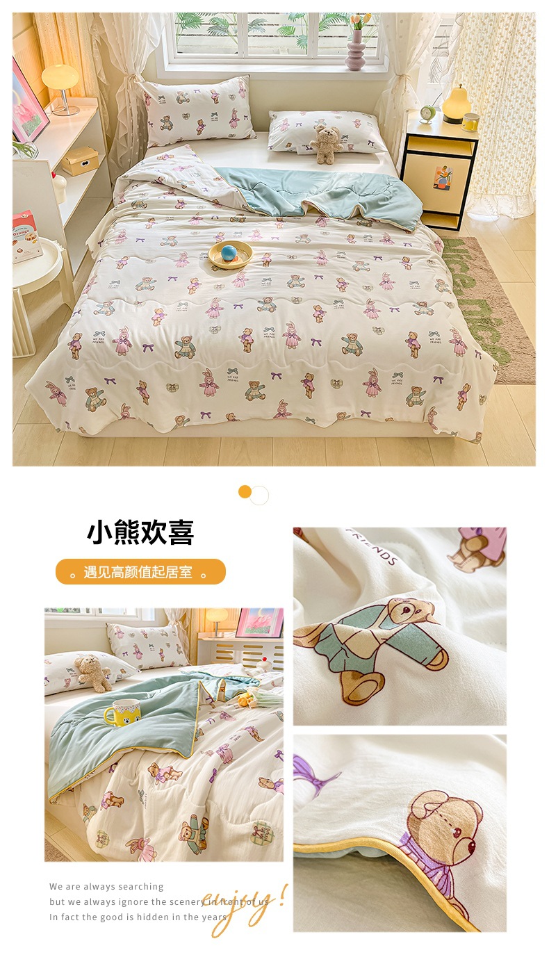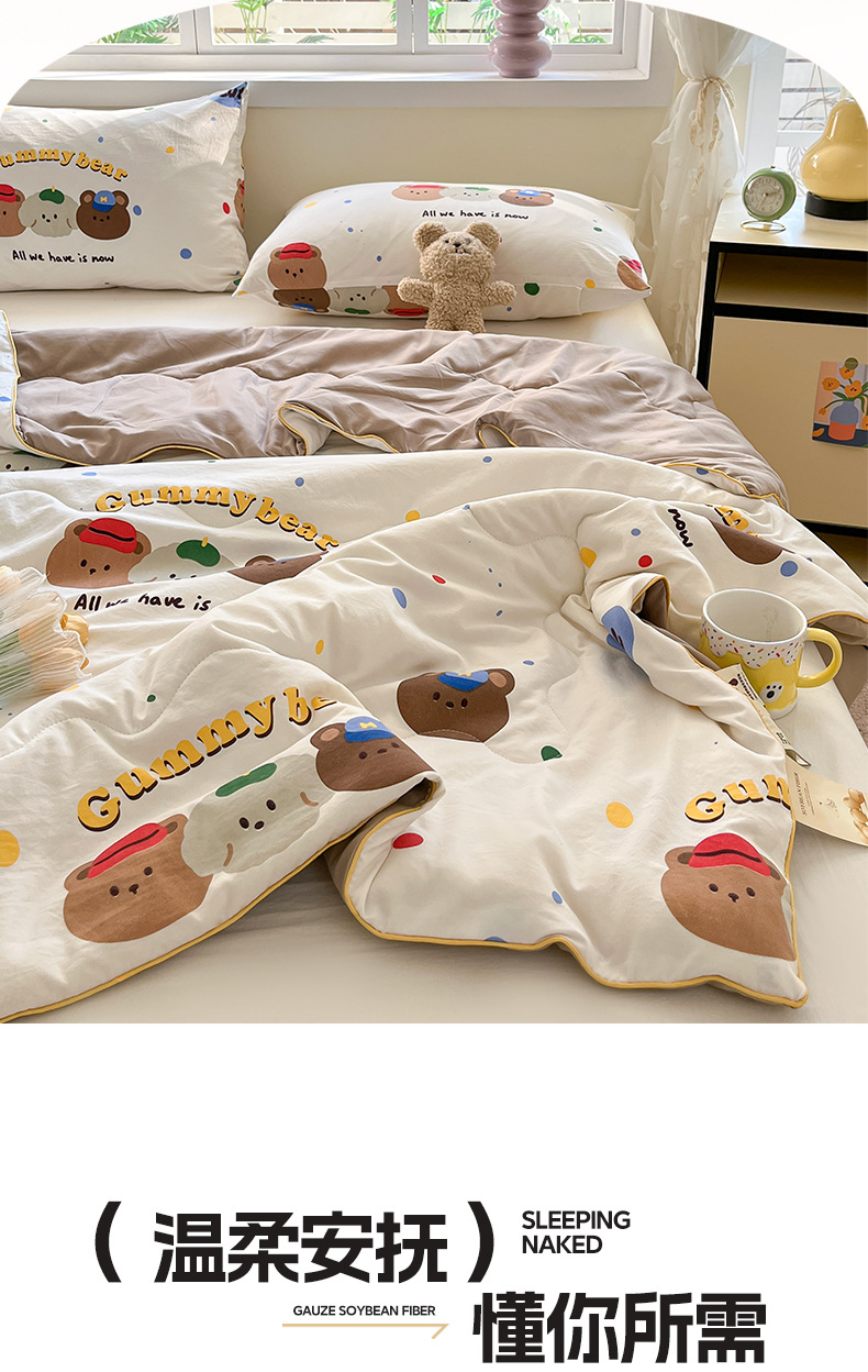 A类卡通水洗绉绉纱夏被双层纱大豆夏凉被宿舍空调被薄被子直播