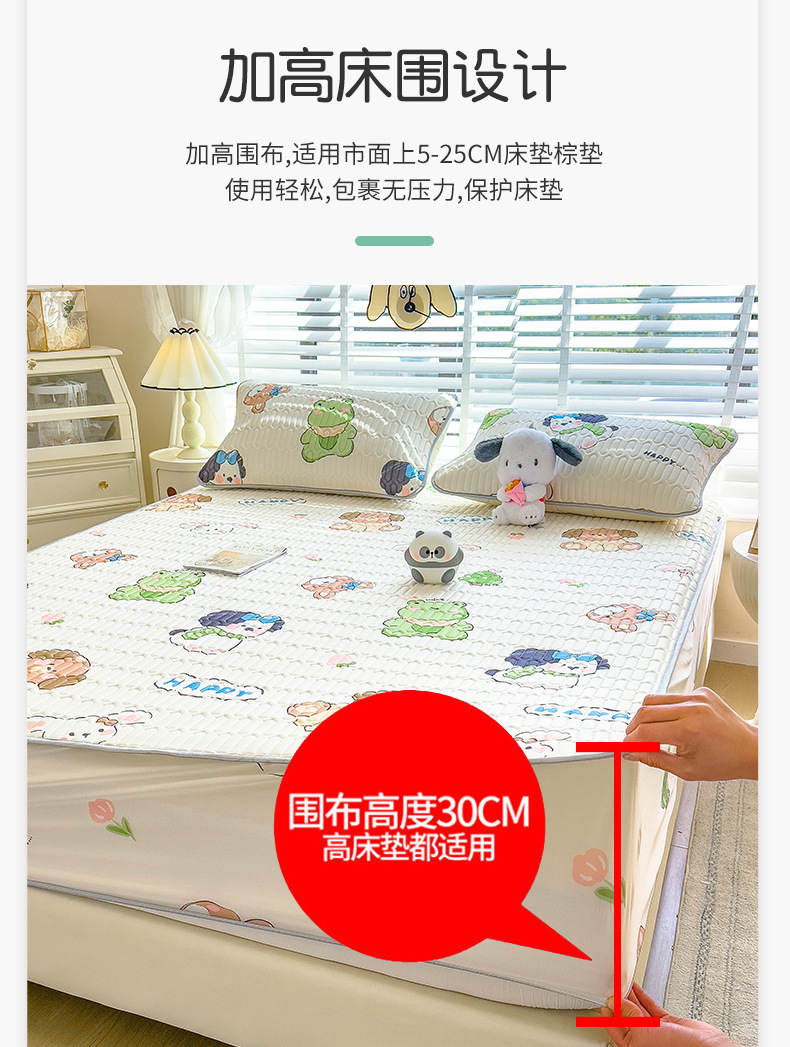A类泰国床笠款乳胶凉席三件套卡通可水洗软席子空调席加厚冰丝席