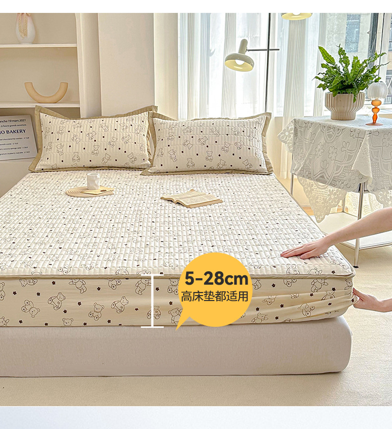 新款A类双层纱夹棉床笠三件套大豆水洗床垫保护罩席梦思床罩批发