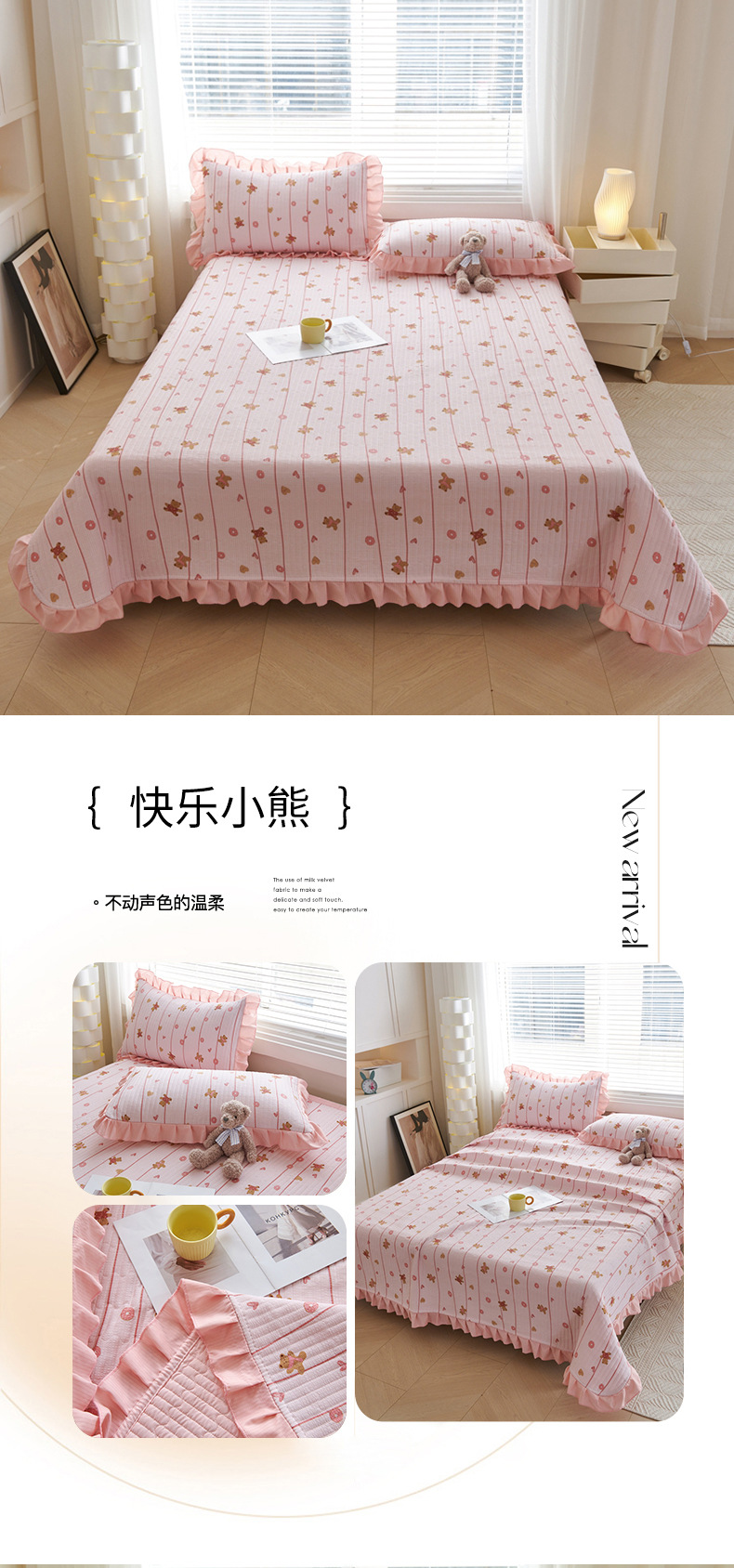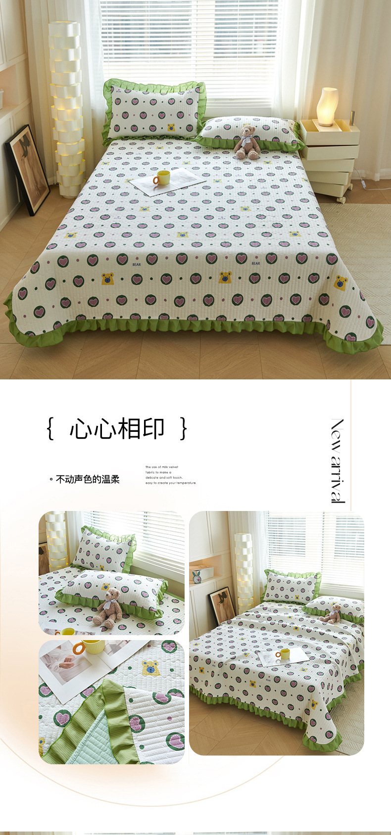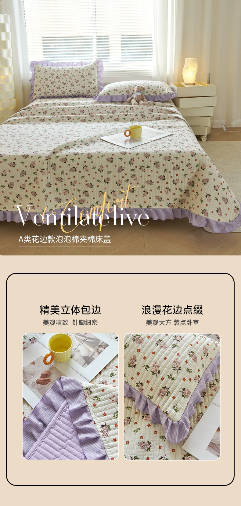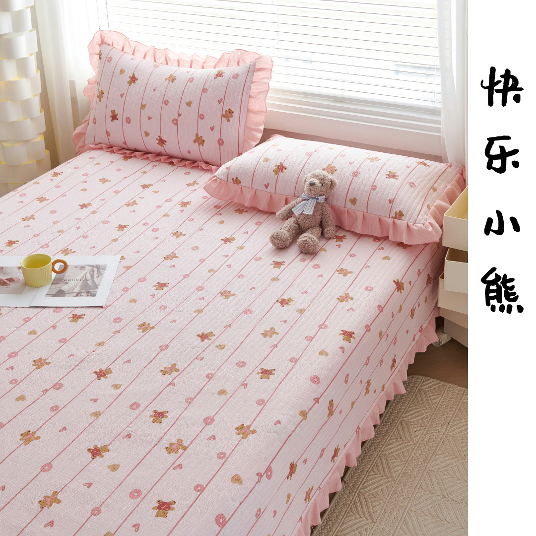 A类韩系泡泡纱夹棉床盖三件套双面可用花边款炕盖加厚榻榻米床单