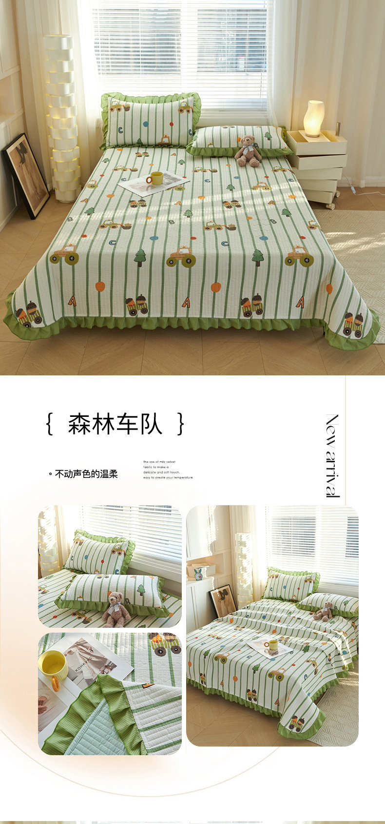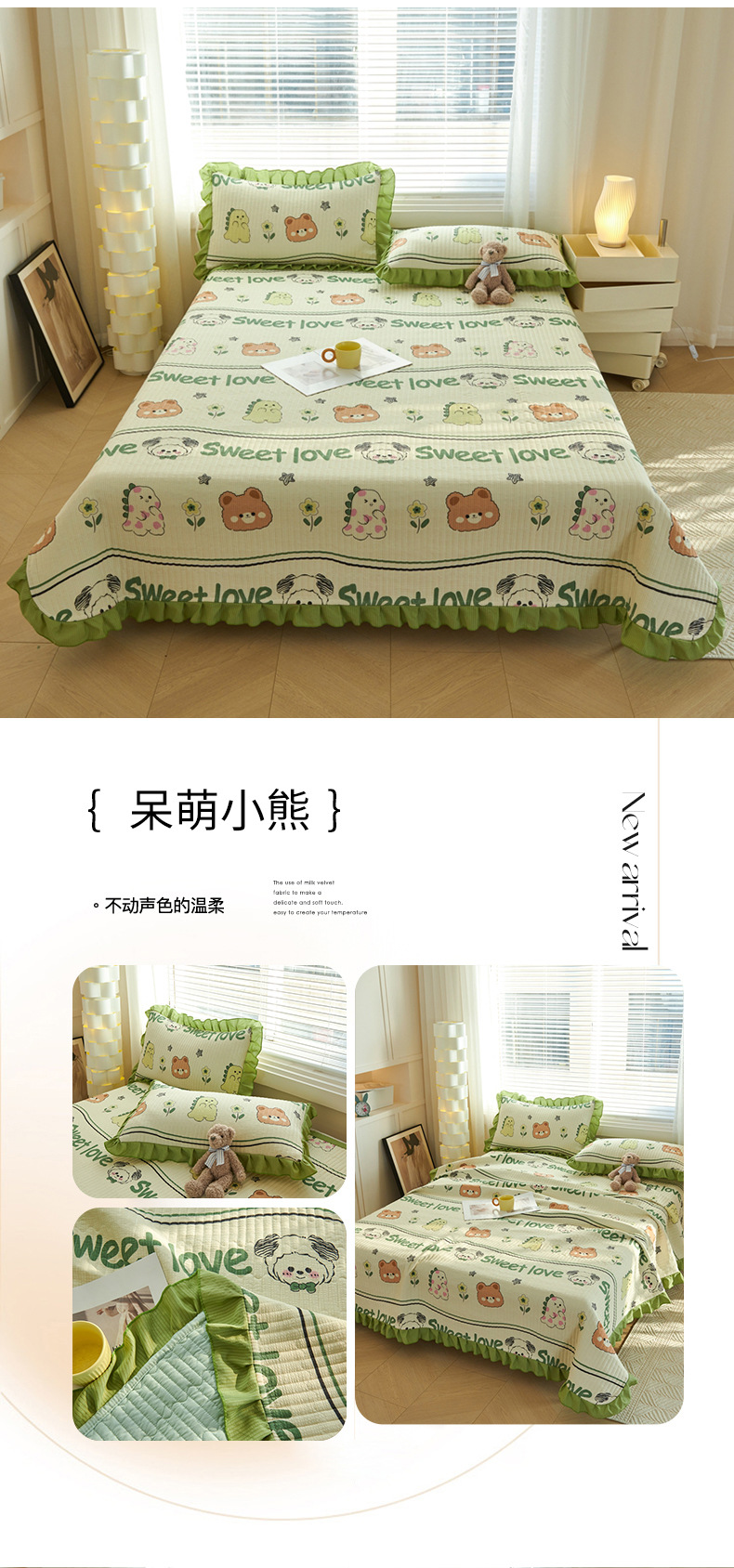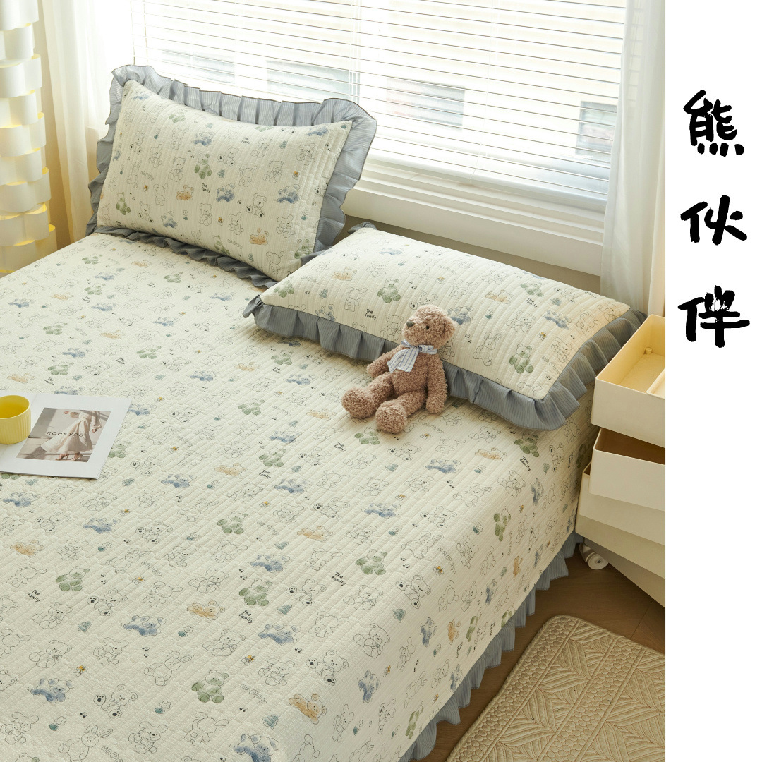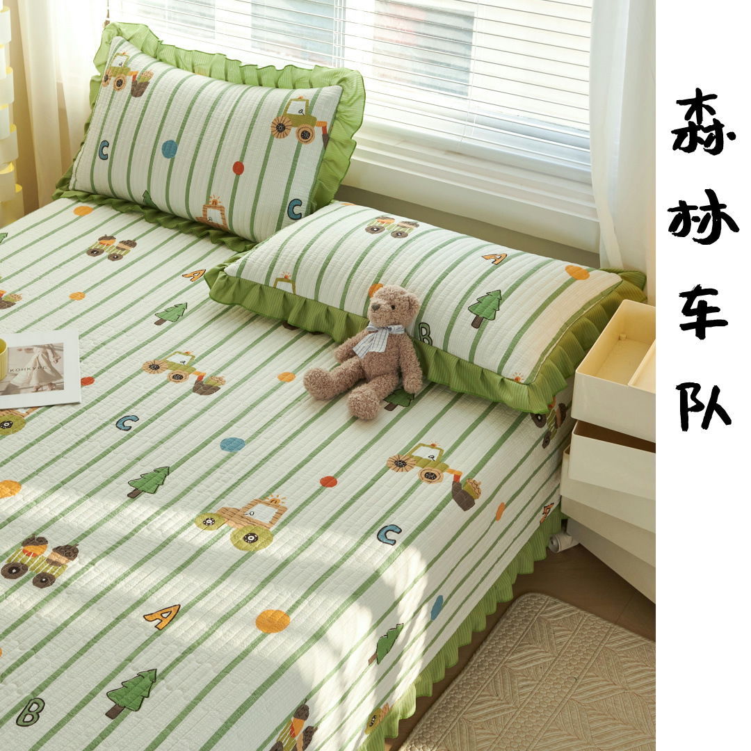 A类韩系泡泡纱夹棉床盖三件套双面可用花边款炕盖加厚榻榻米床单