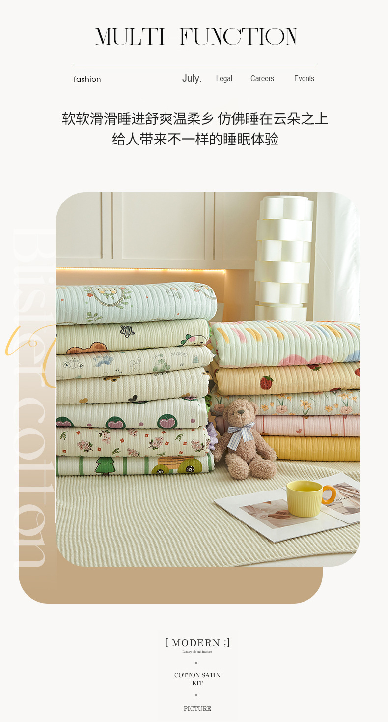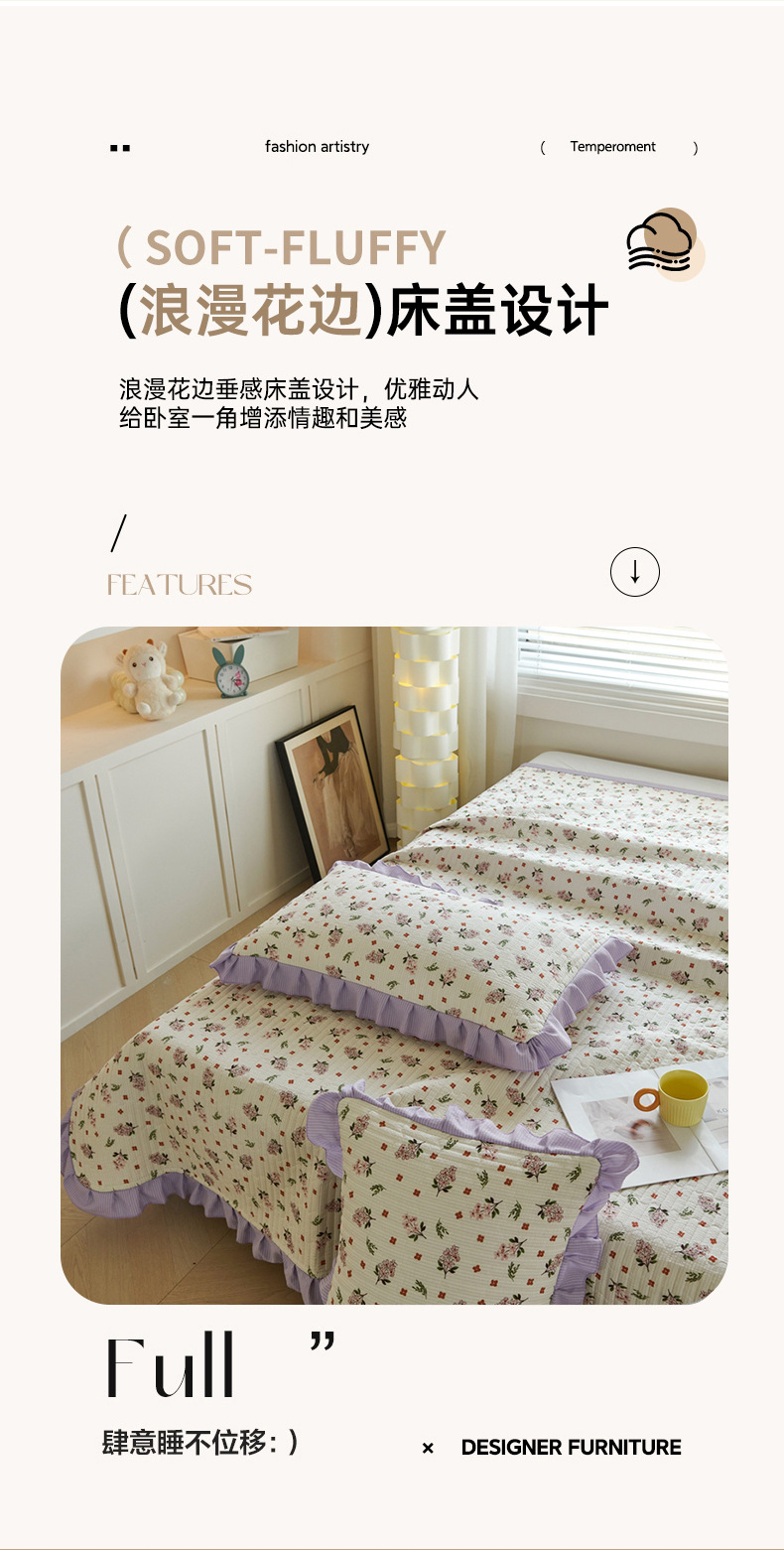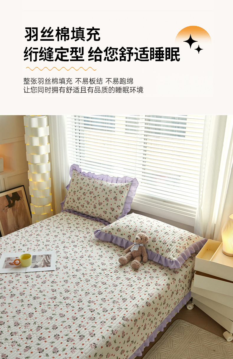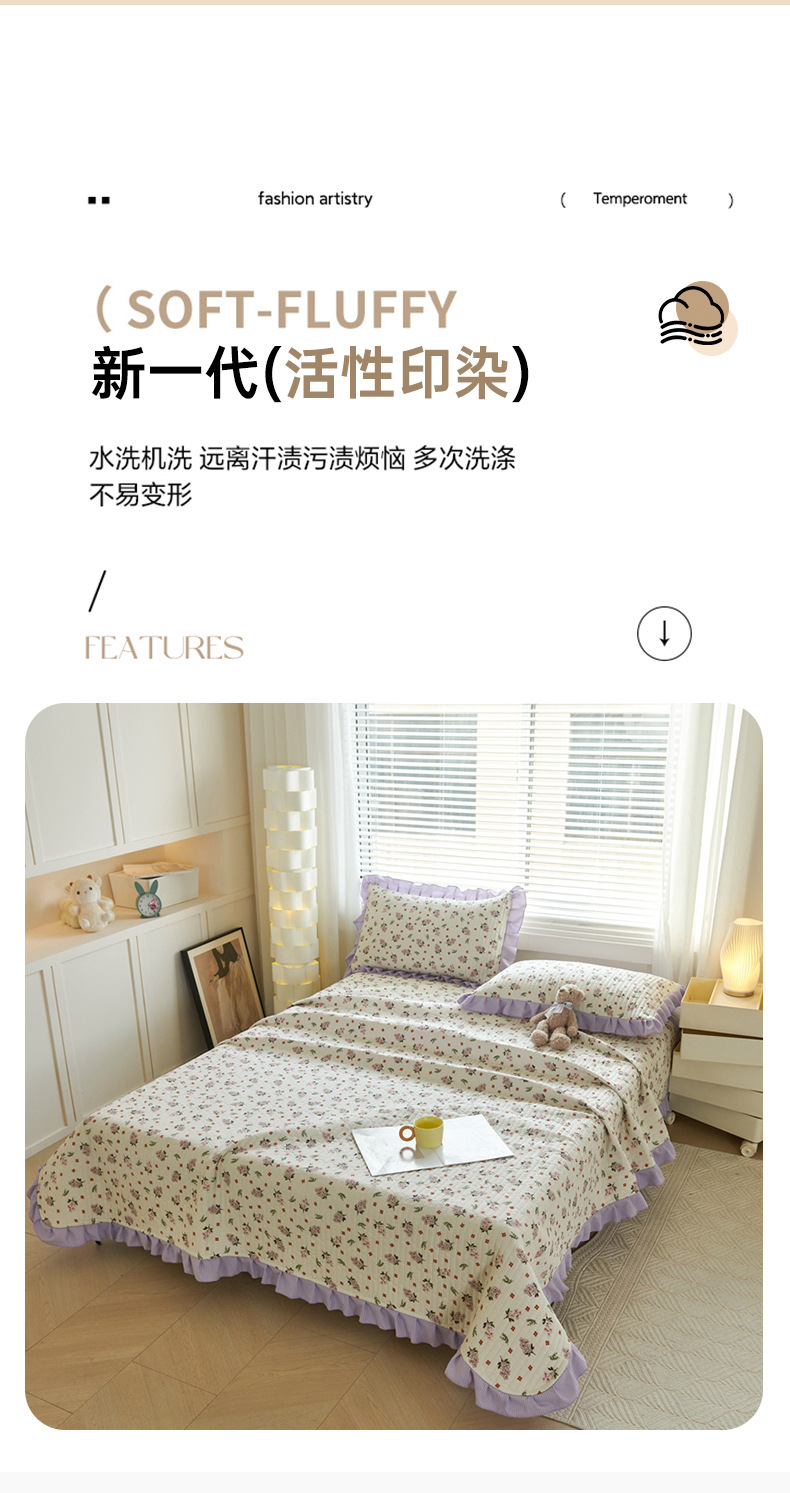 A类韩系泡泡纱夹棉床盖三件套双面可用花边款炕盖加厚榻榻米床单