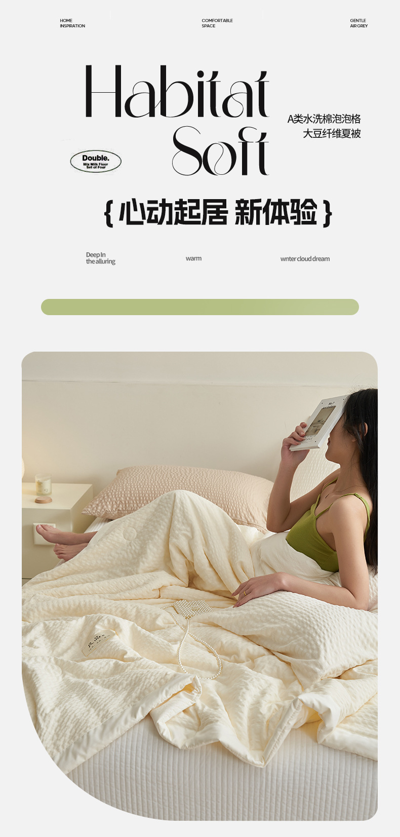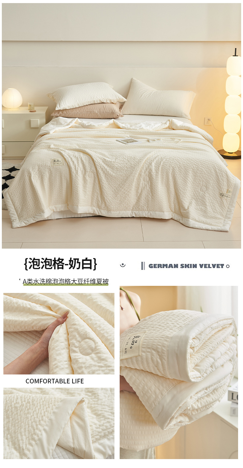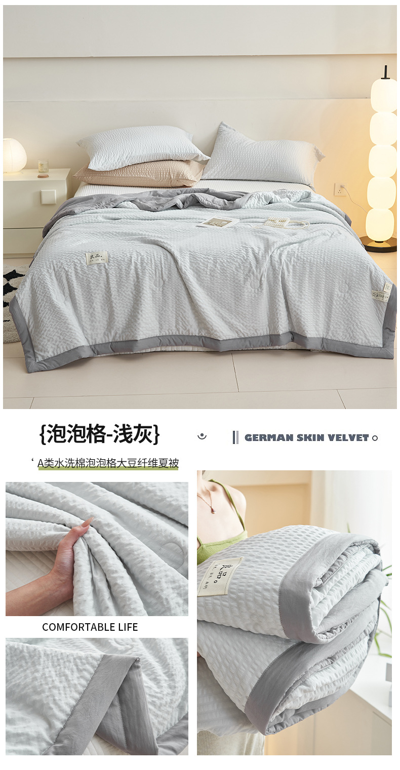 日式A类水洗棉泡泡格大豆纤维夏被无印风夏凉被良品可水洗空调被