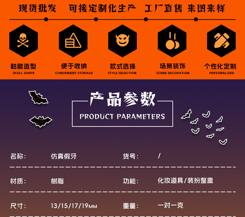 跨境货源化妆舞会整蛊道具万圣节吸血鬼僵尸假牙仿真牙齿道具批发