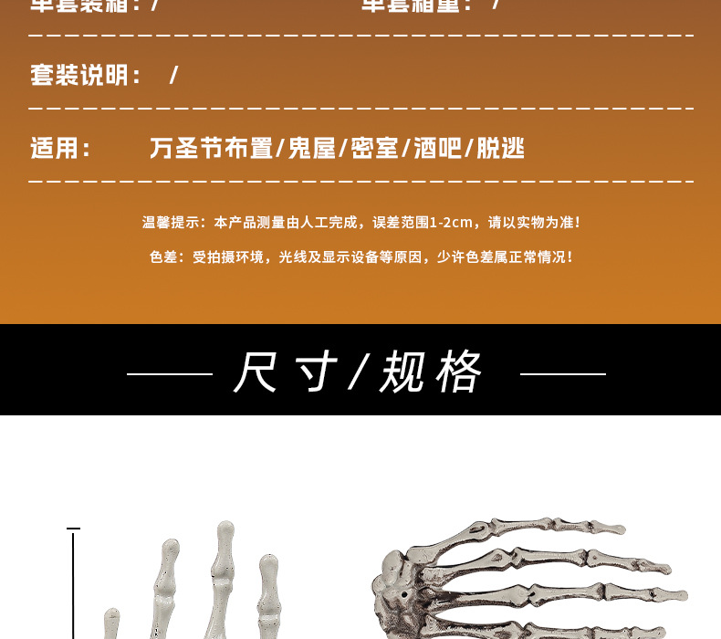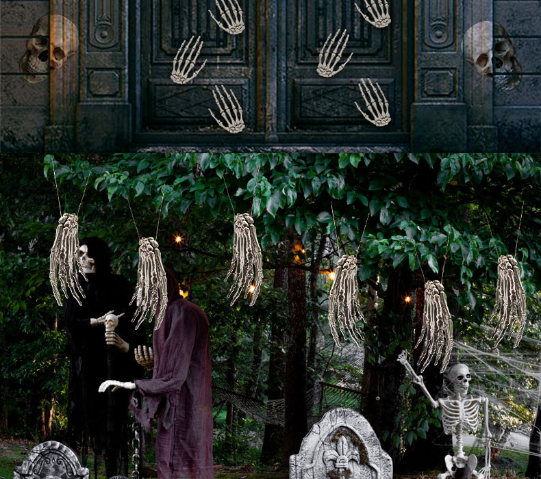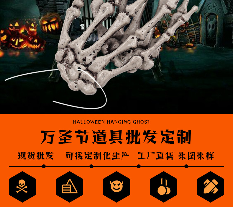 现货万圣节骷髅手爪骨架子鬼屋用品道具派对恐怖整蛊装饰厂家批发