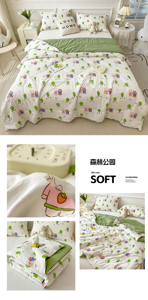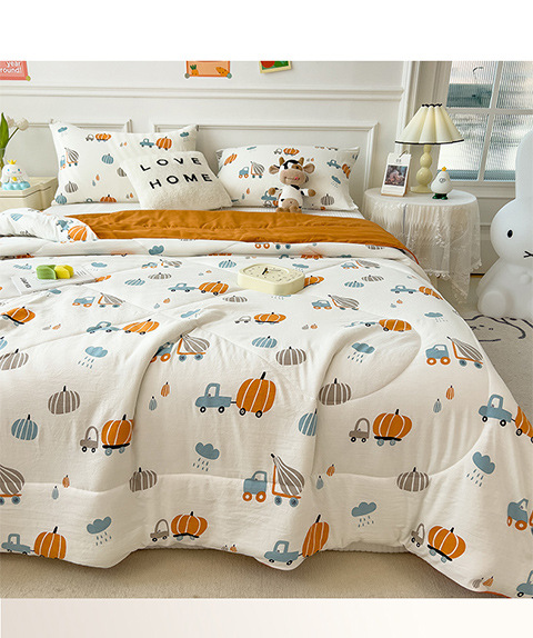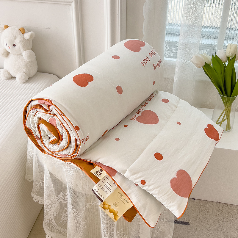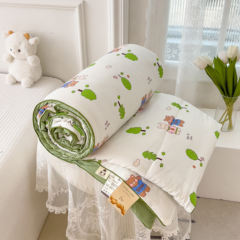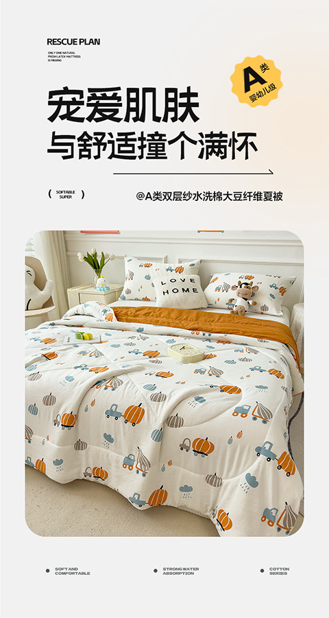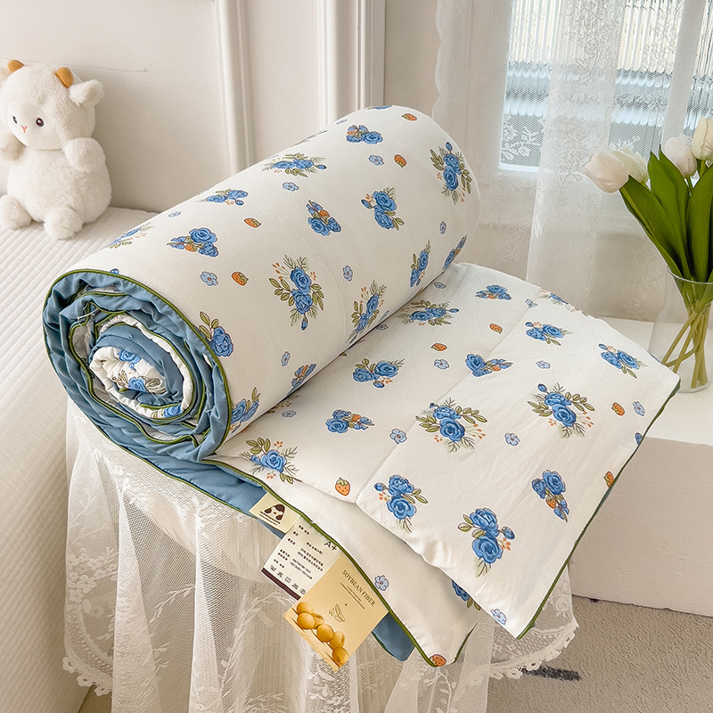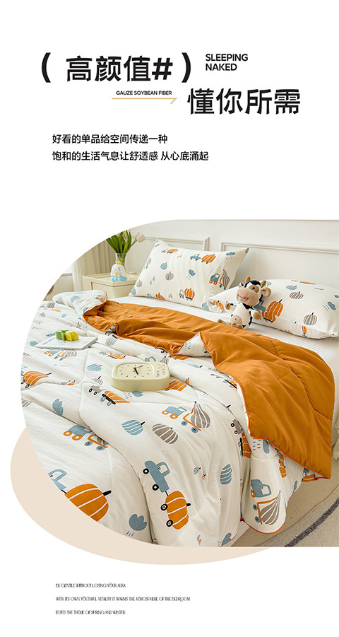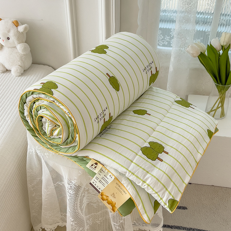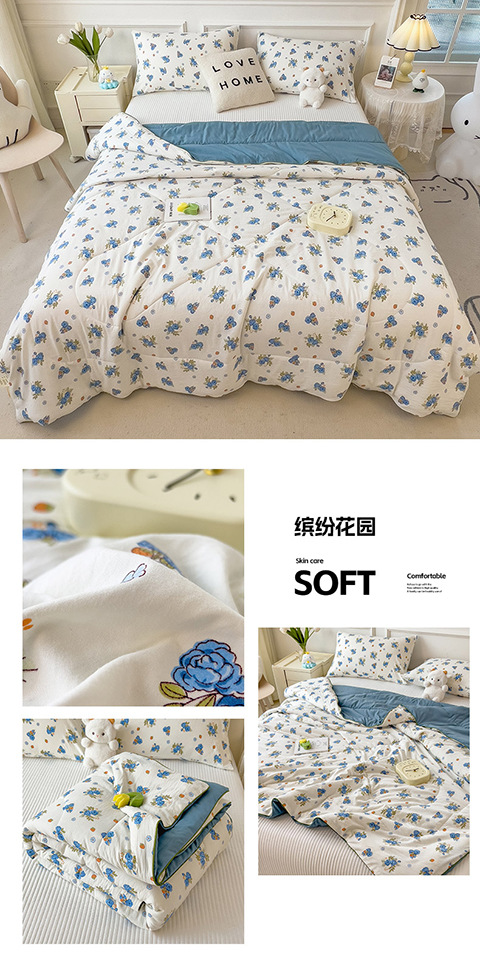外贸A类双层纱水洗棉夏被印花绉绉纱大豆纤维夏凉被空调薄被子
