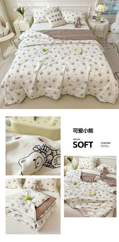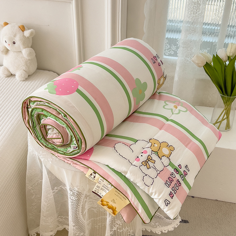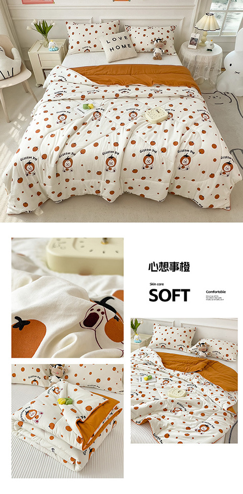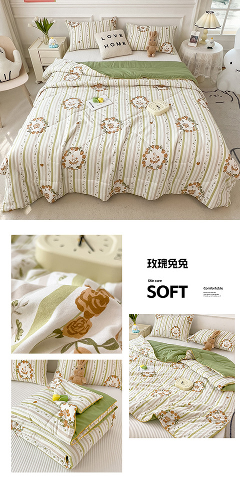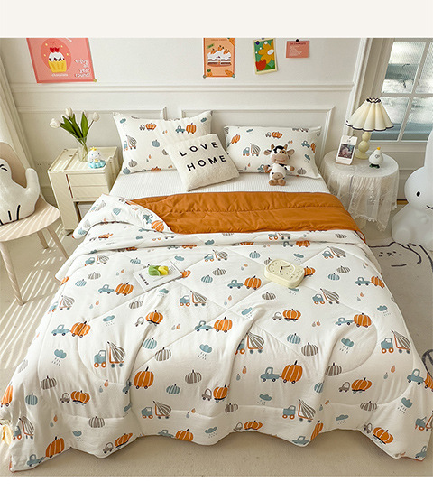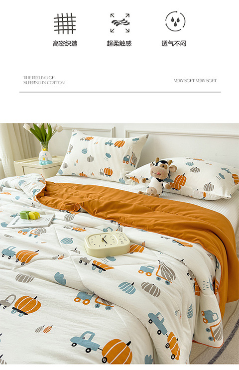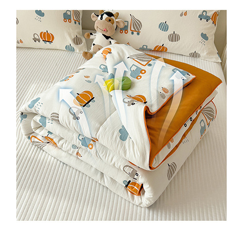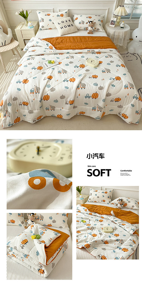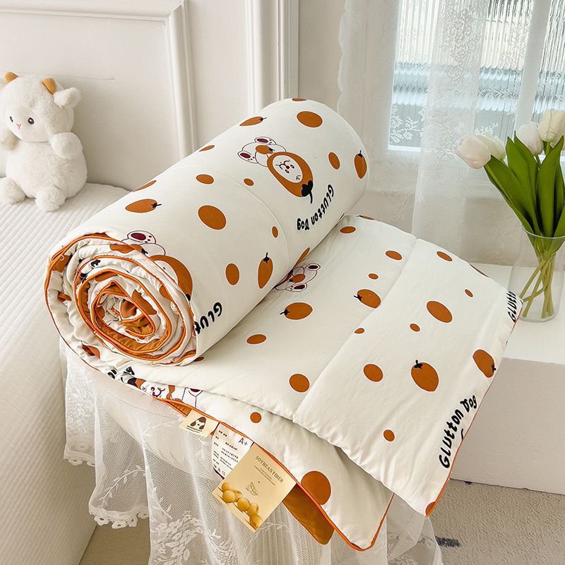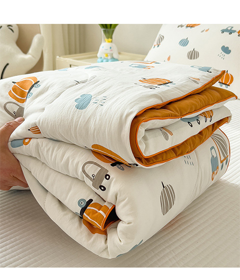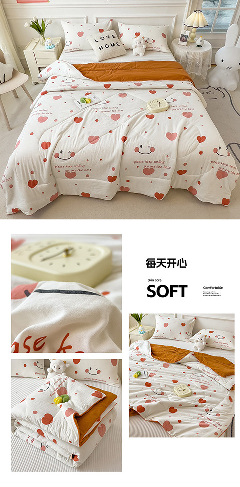 外贸A类双层纱水洗棉夏被印花绉绉纱大豆纤维夏凉被空调薄被子