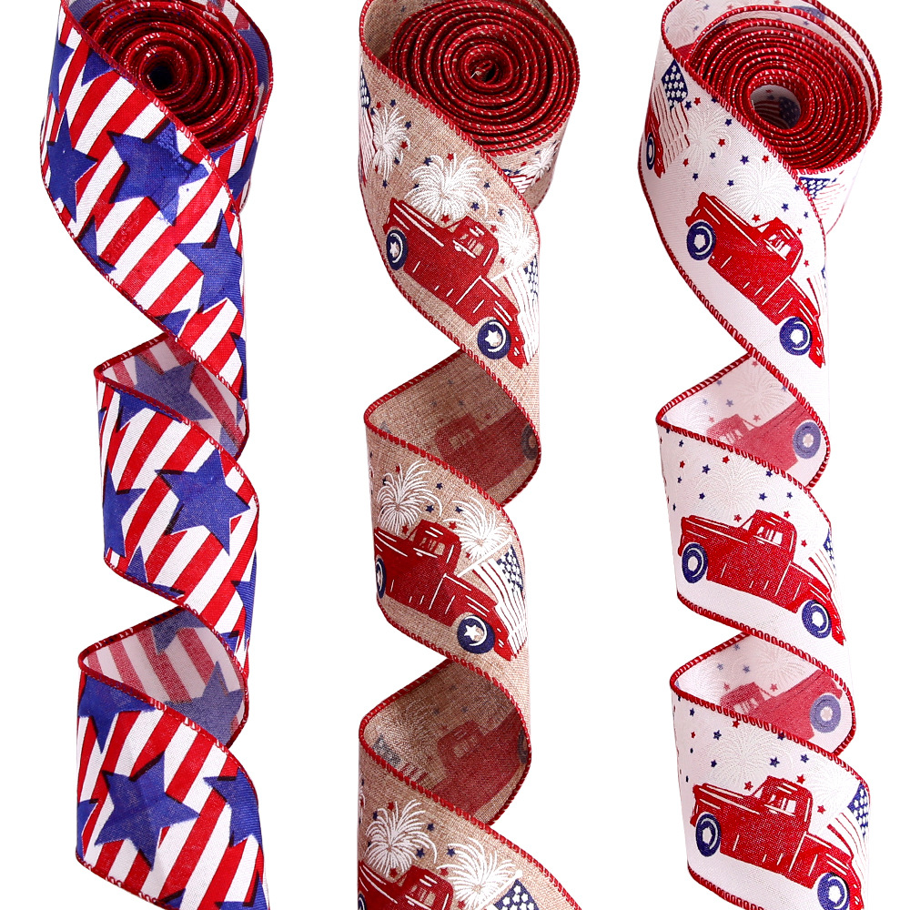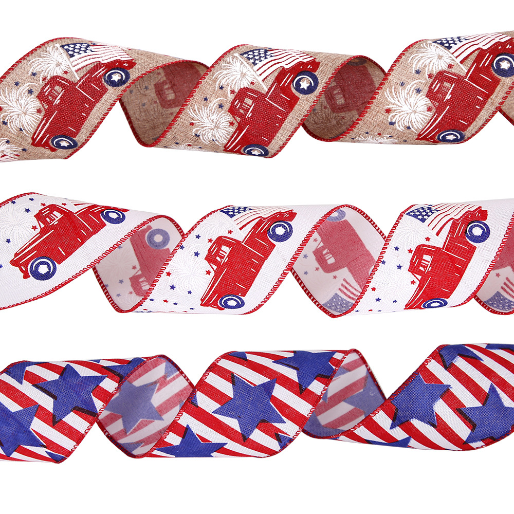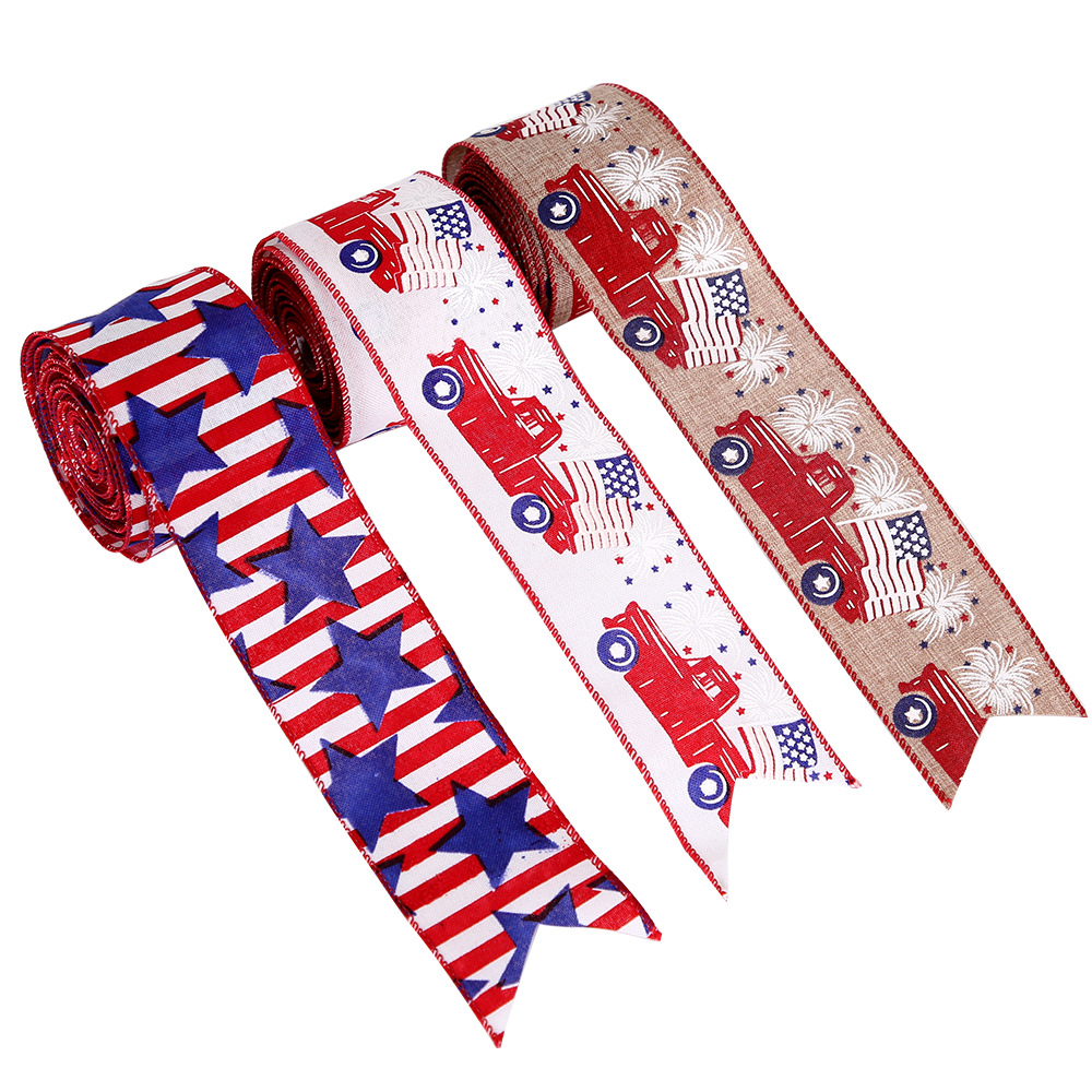 亚马逊跨境美国独立日装饰丝带红白蓝国庆节国旗小车五角星丝带