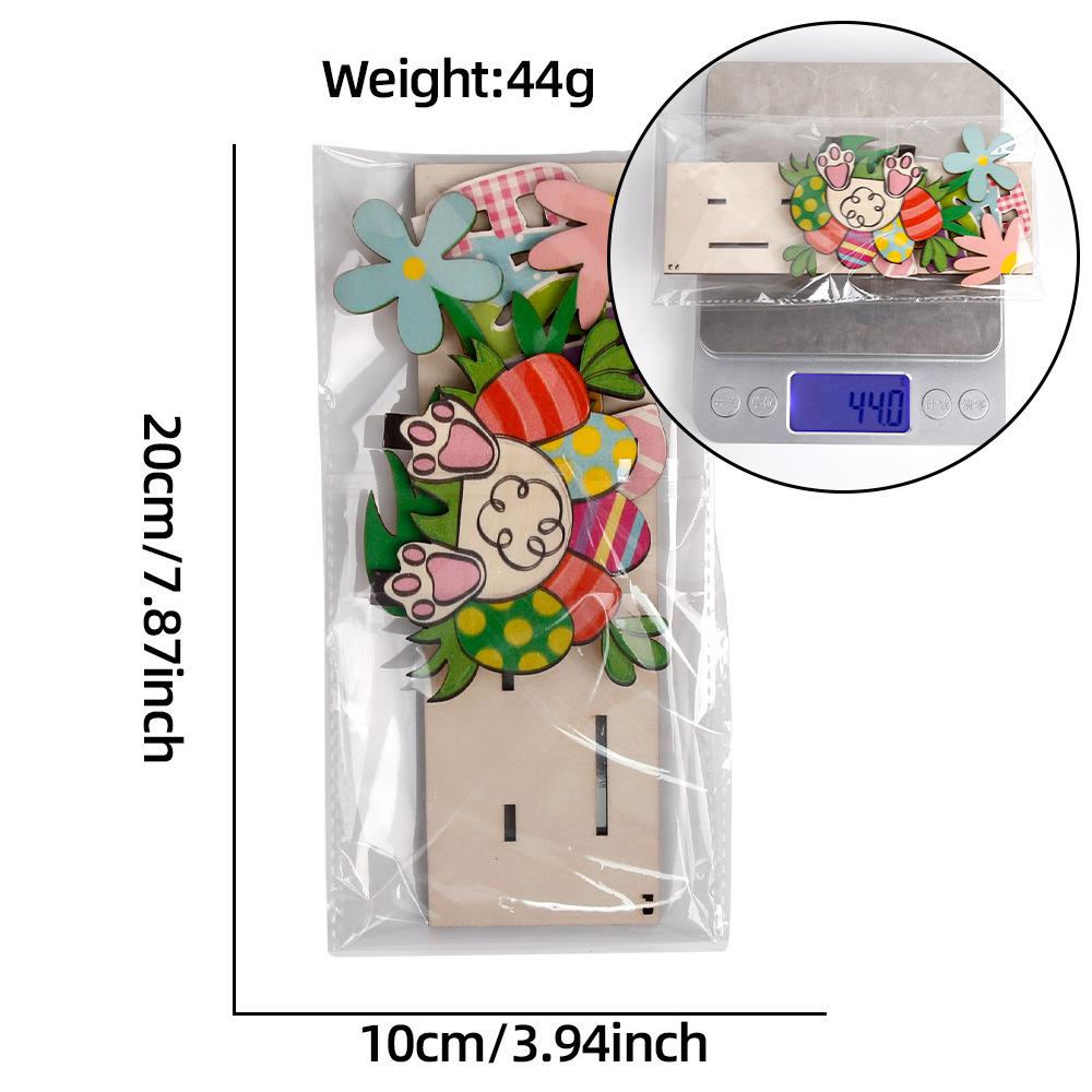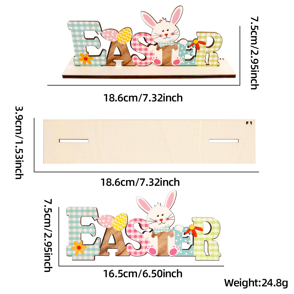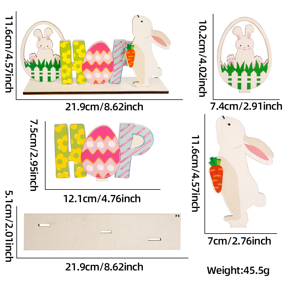 新款复活节木质工艺品兔子彩蛋木片摆件春季派对装饰彩印立体摆设