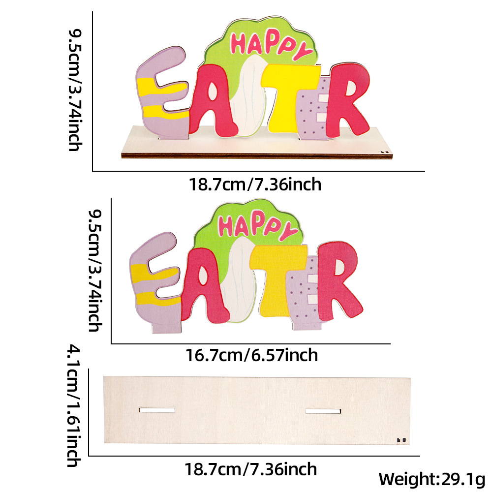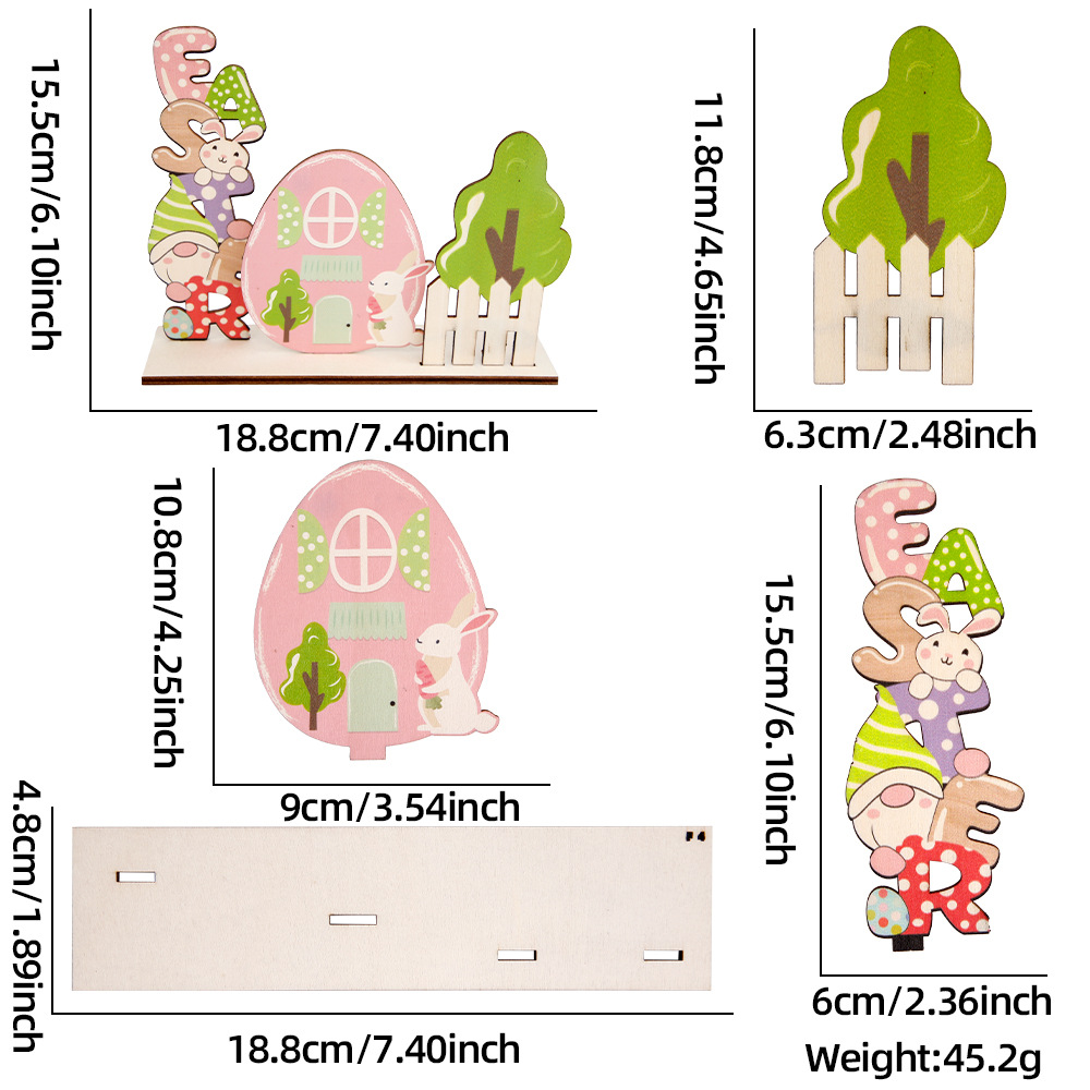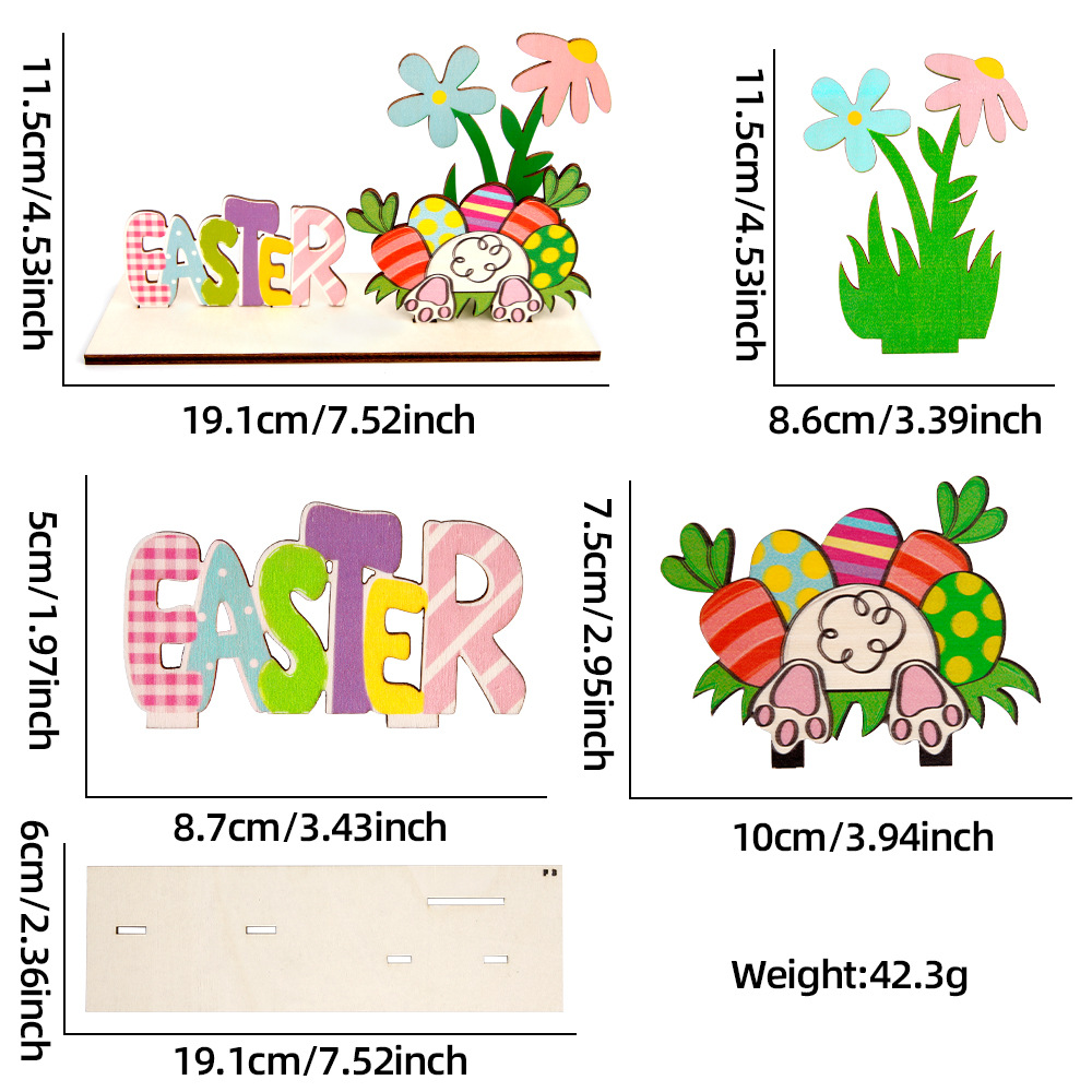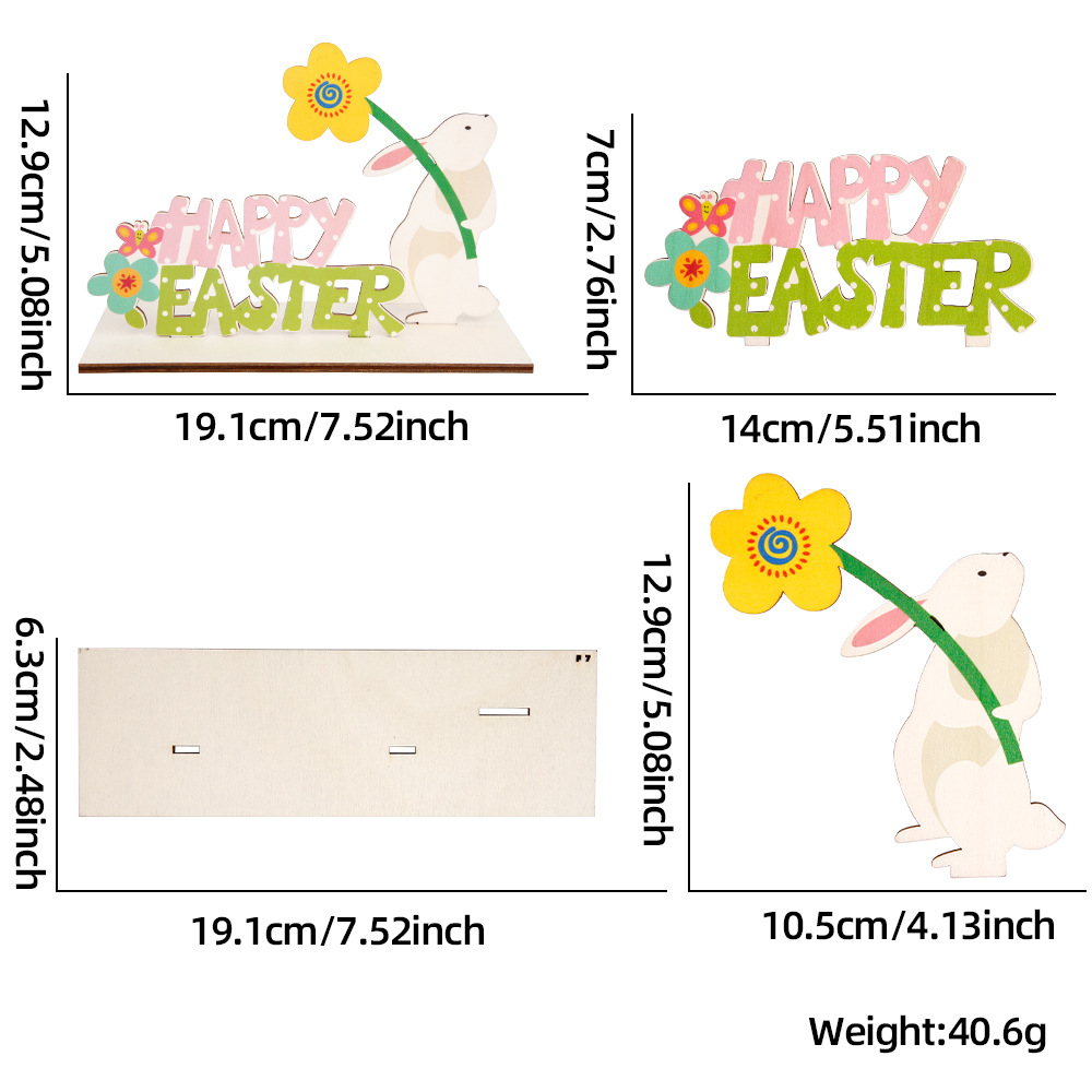 新款复活节木质工艺品兔子彩蛋木片摆件春季派对装饰彩印立体摆设