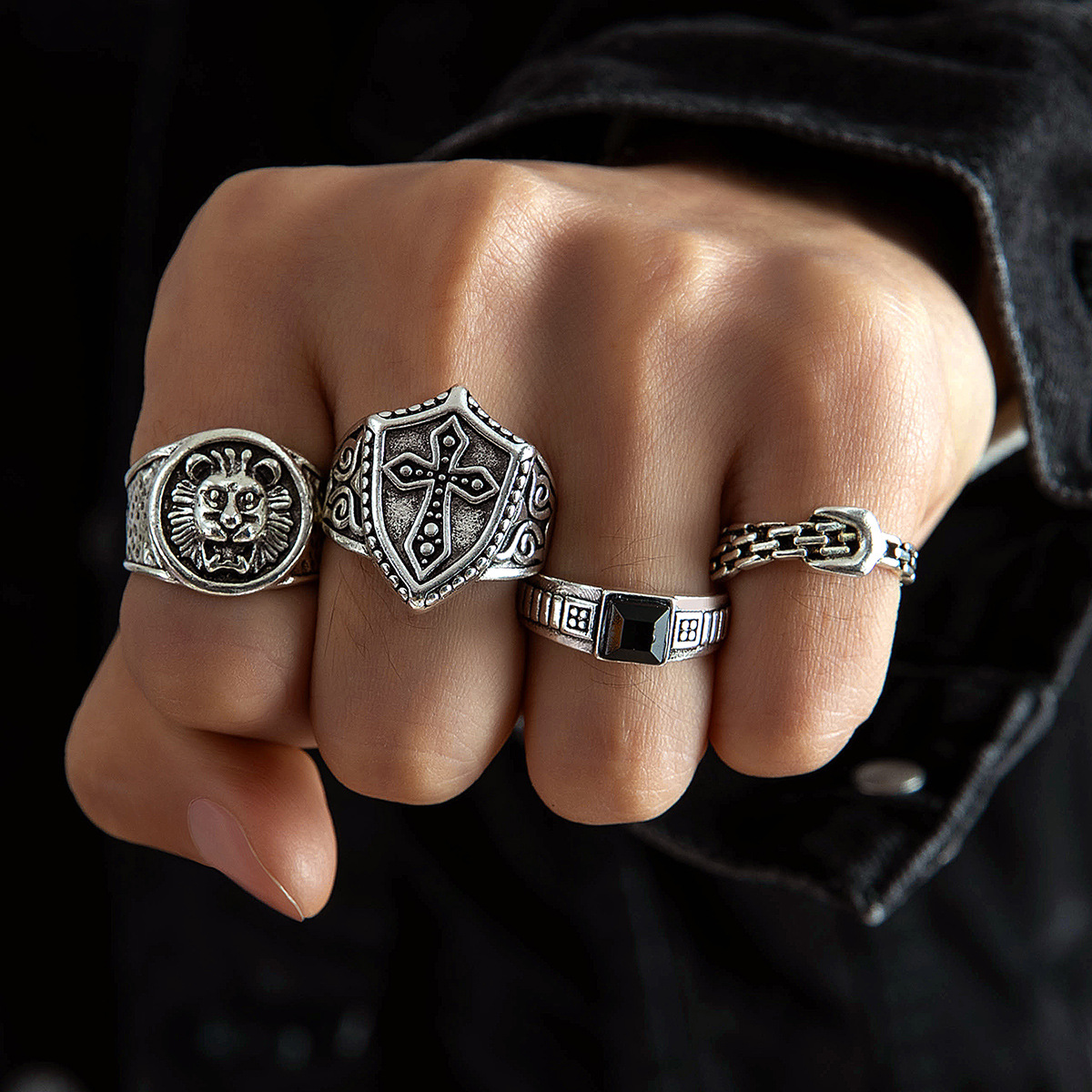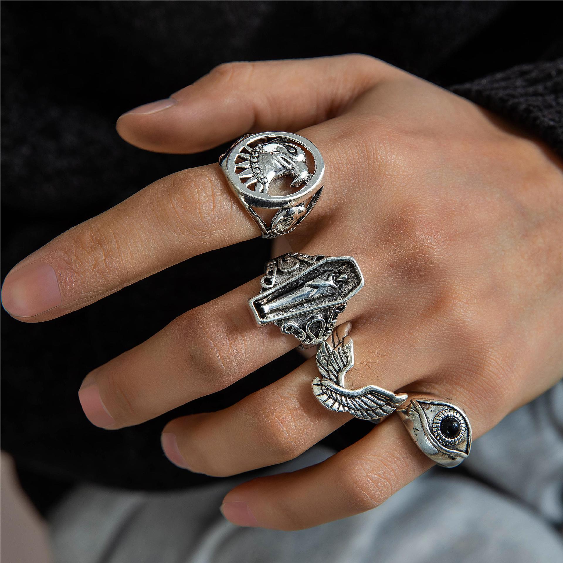 跨境饰品 朋克风几何合金男士戒指 复古个性骷髅头蛇形戒指套装