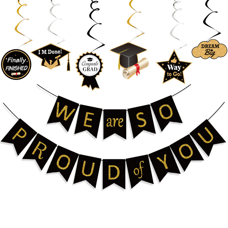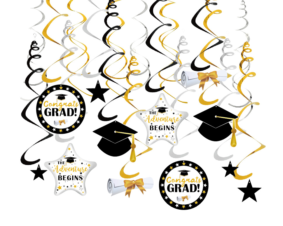 2024亚马逊毕业季派对装饰毕业照片横幅拉旗 PVC毕业螺旋挂饰
