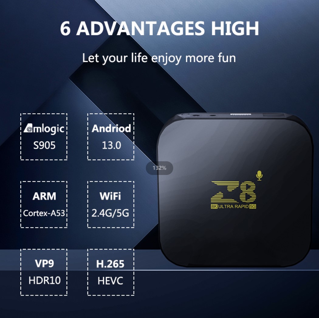 Z8ATV厂家跨境4K网络电视机顶盒安卓盒子网络播放器外贸蓝牙tvbox
