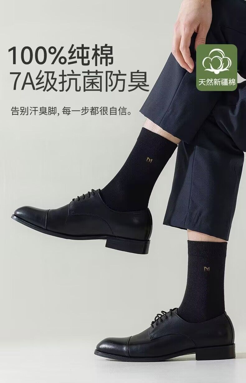 7A抗新疆棉袜男士中筒袜四季款商务透气吸汗防臭纯棉长筒男袜子