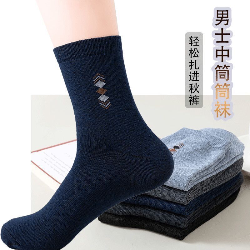 袜子秋冬男中筒袜四季防臭防滑吸汗透气男长筒袜中老年人爸爸袜子