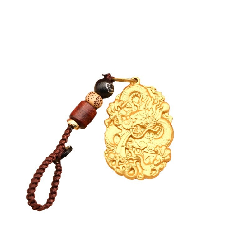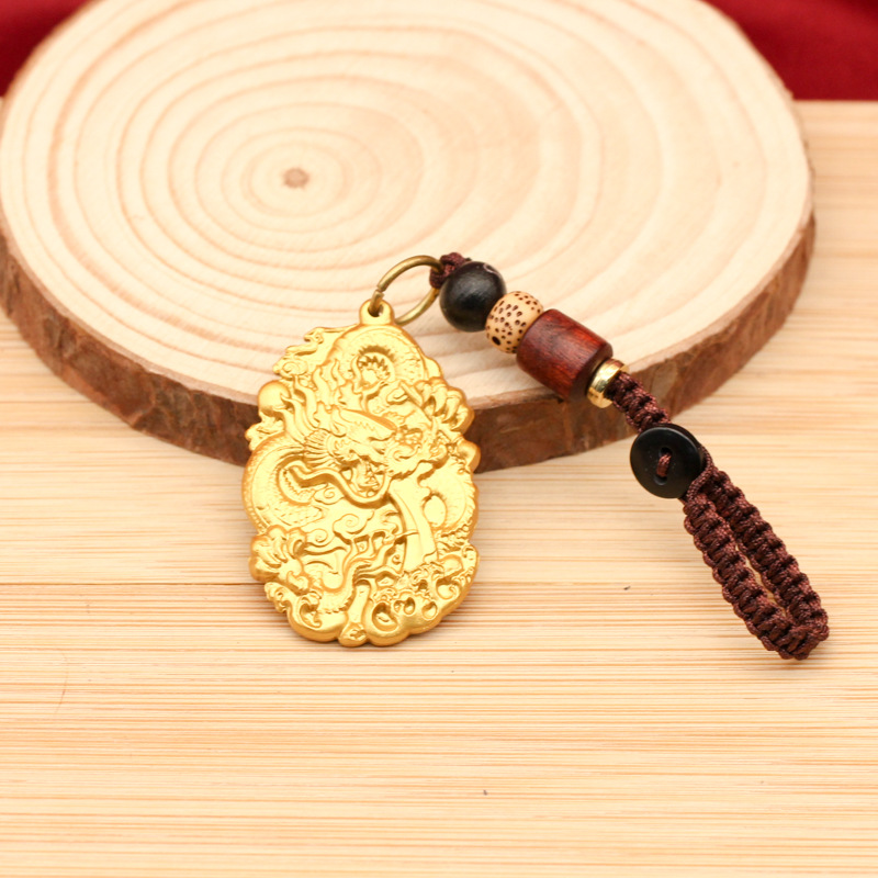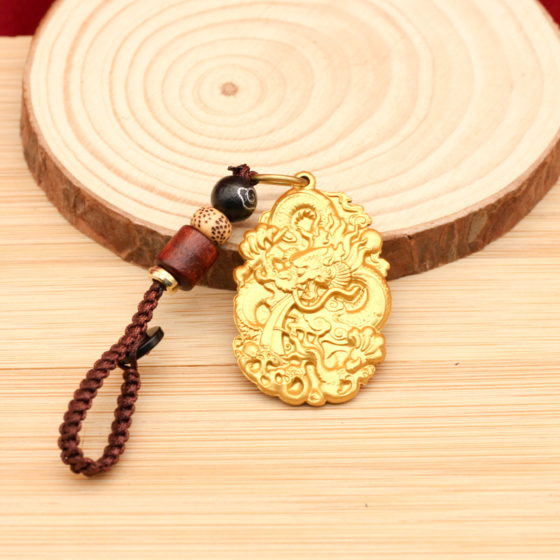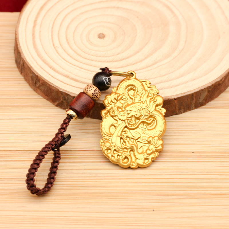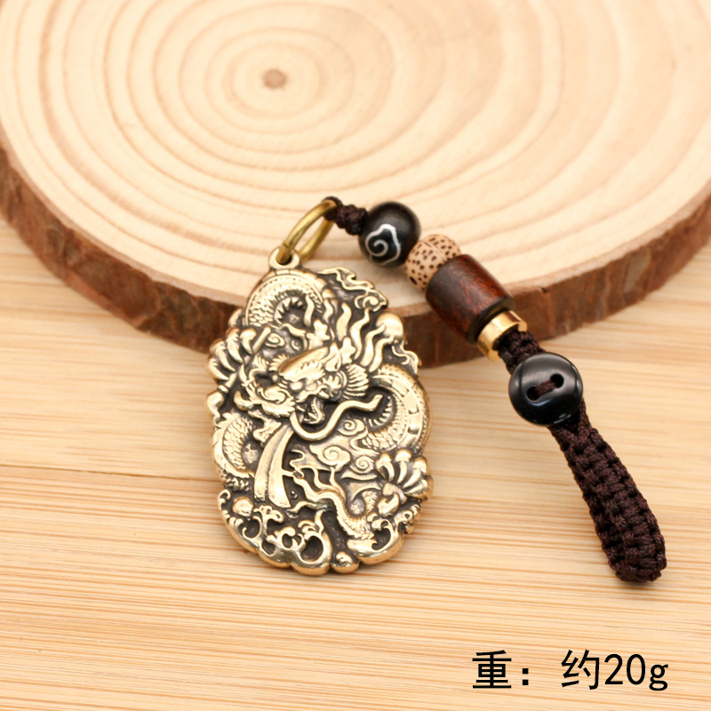 黄铜生肖龙牌吊坠挂件钥匙扣铜龙牌飞龙男士复古吊牌做旧手把件