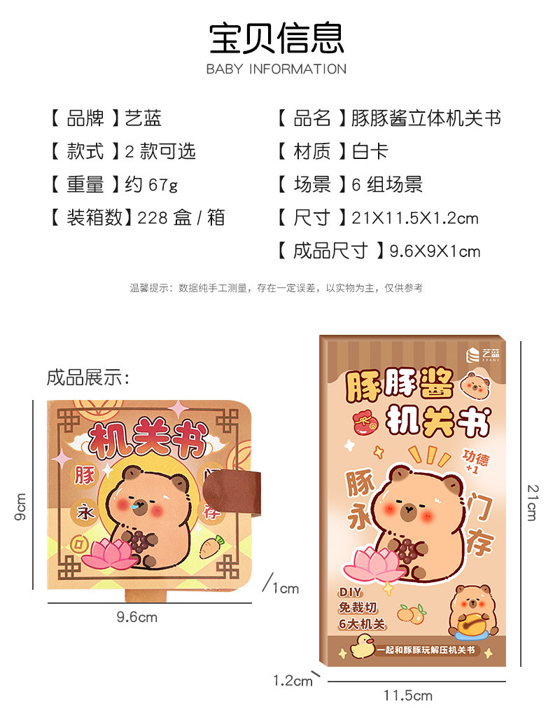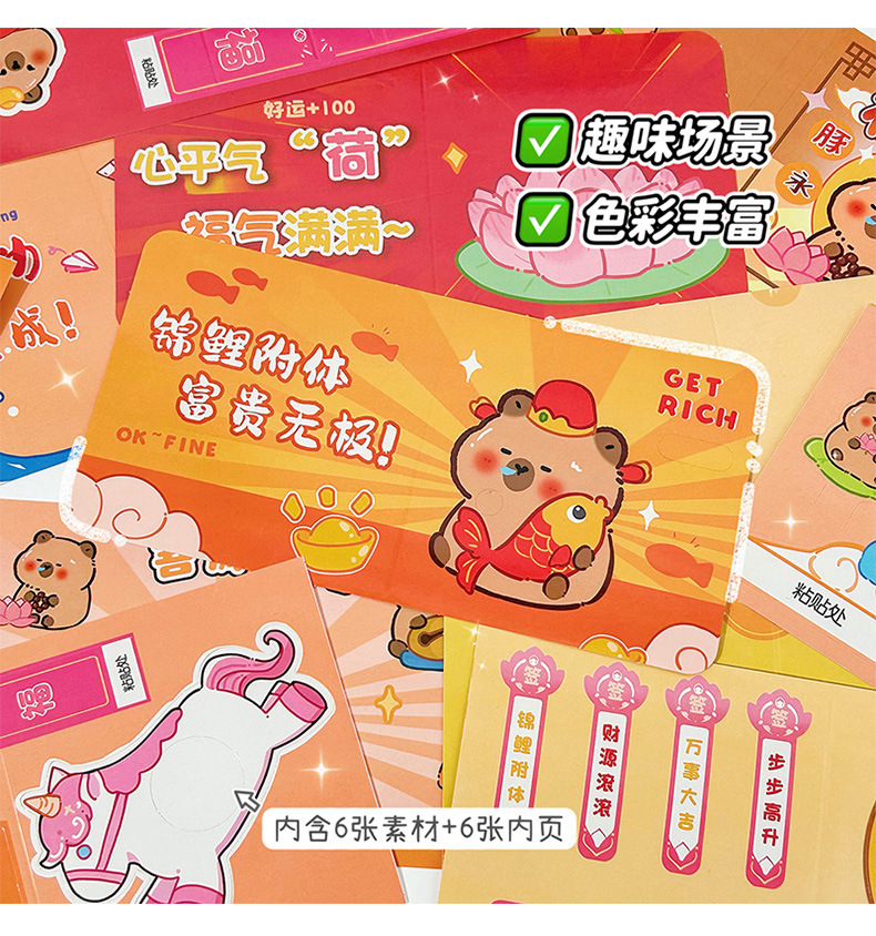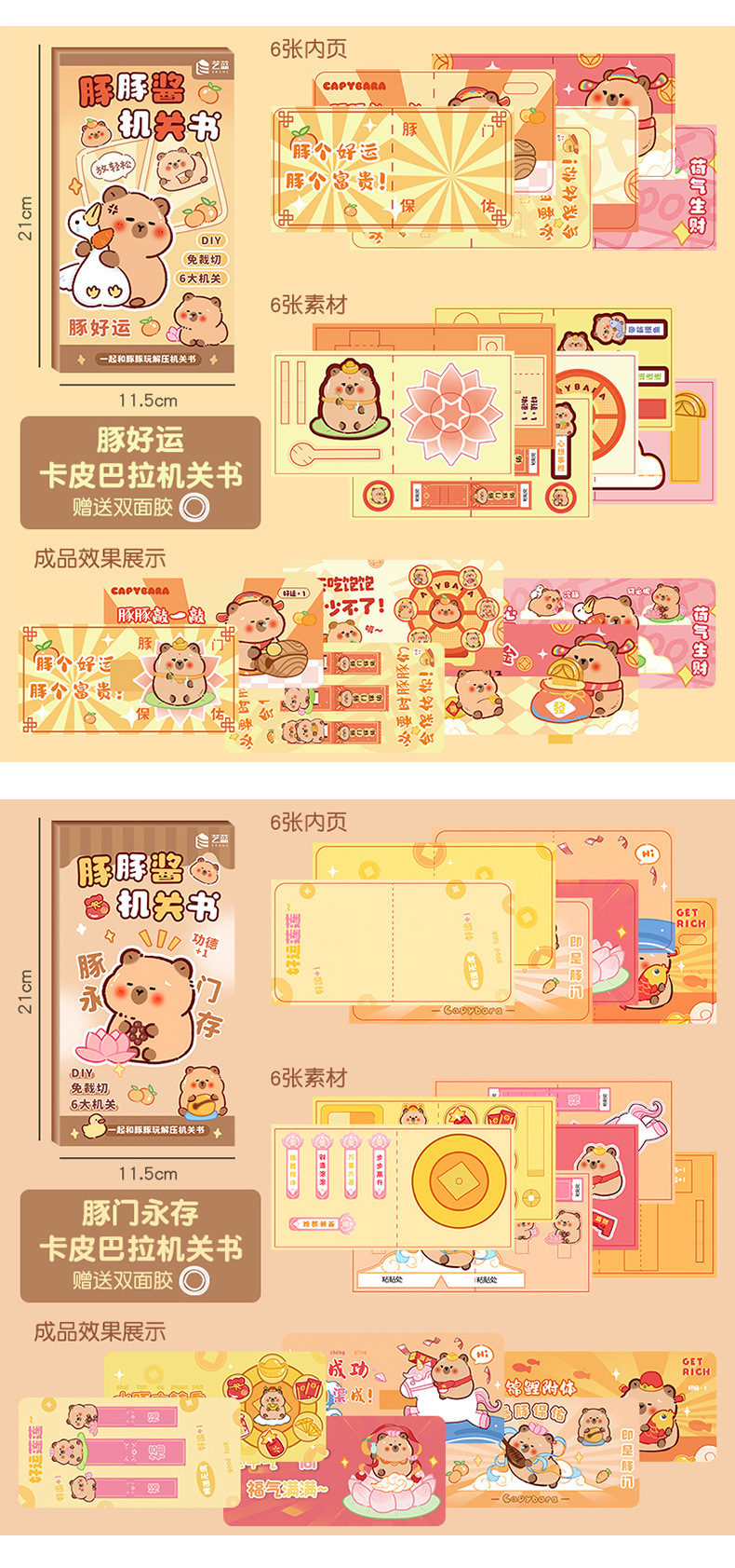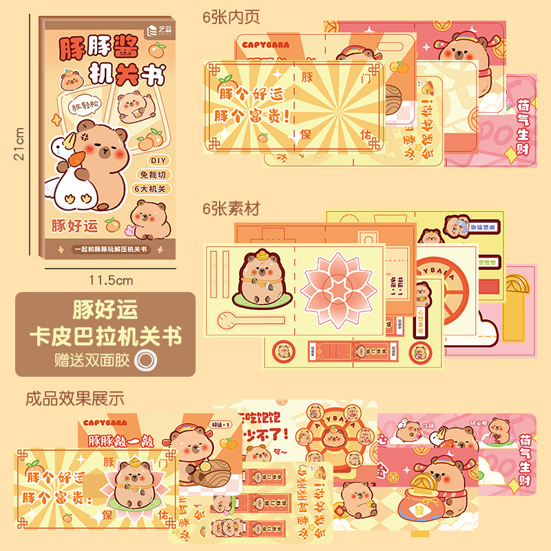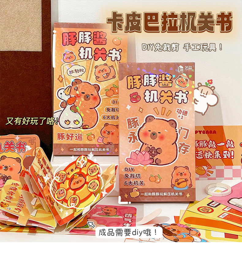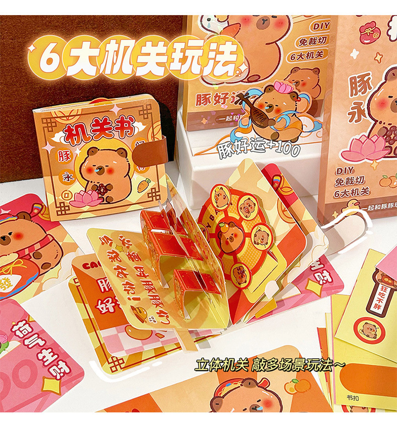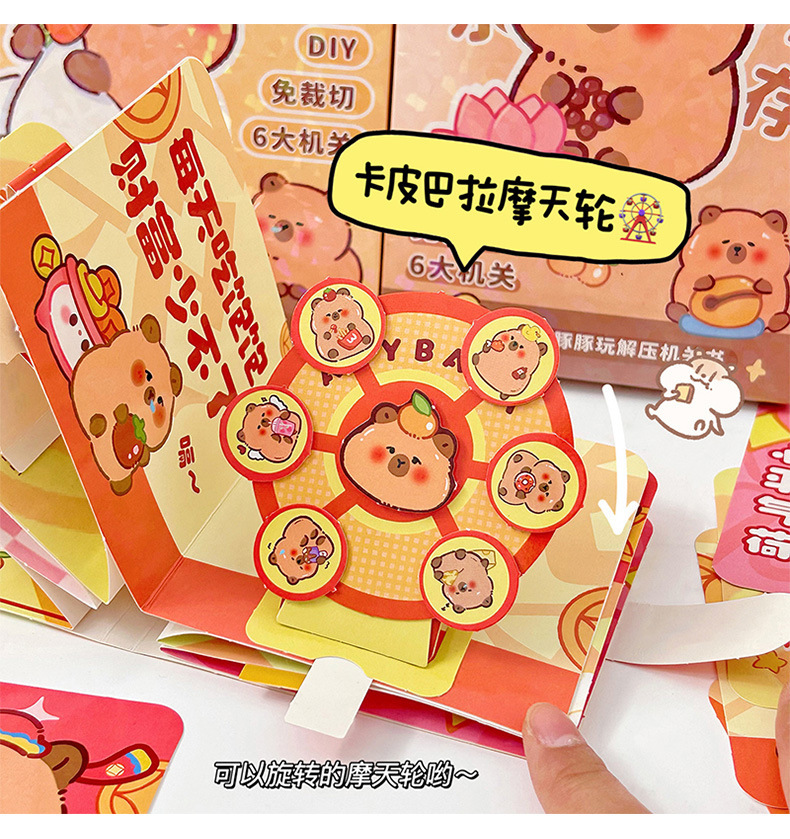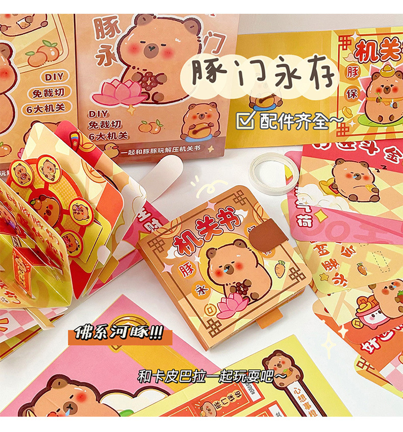 卡皮巴拉机关书贴纸可爱手工儿童DIY玩具书创意解压安静书贴纸本