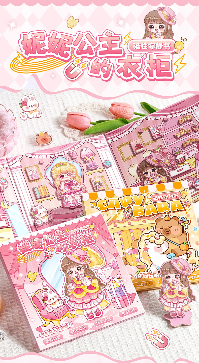 创意磁吸安静书贴纸儿童益智手工diy磁力贴免裁剪换装贴纸熟玩具