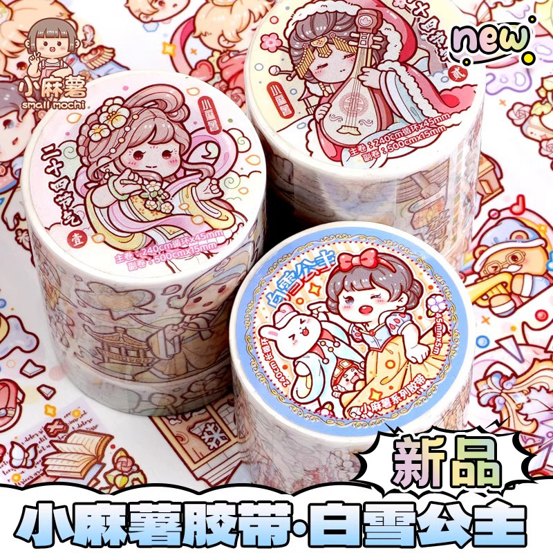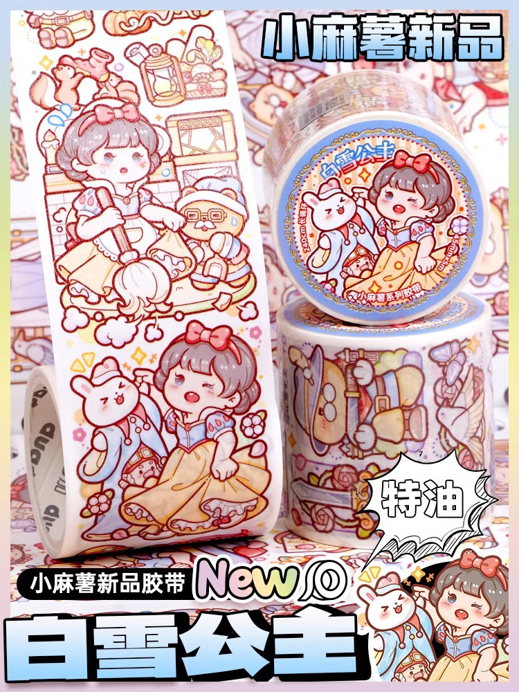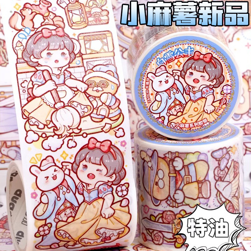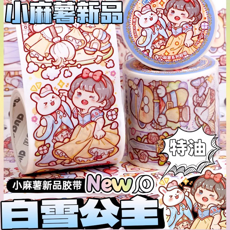 小麻薯胶带白雪公主新品全套整卷手账胶带彩色人物特油和纸胶带
