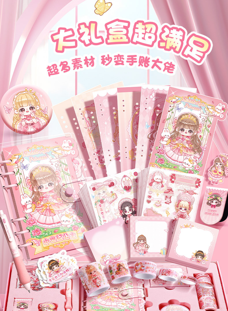 卡皮巴拉手账本套装活页笔记本少女心贴纸素材可爱手帐日记本礼盒